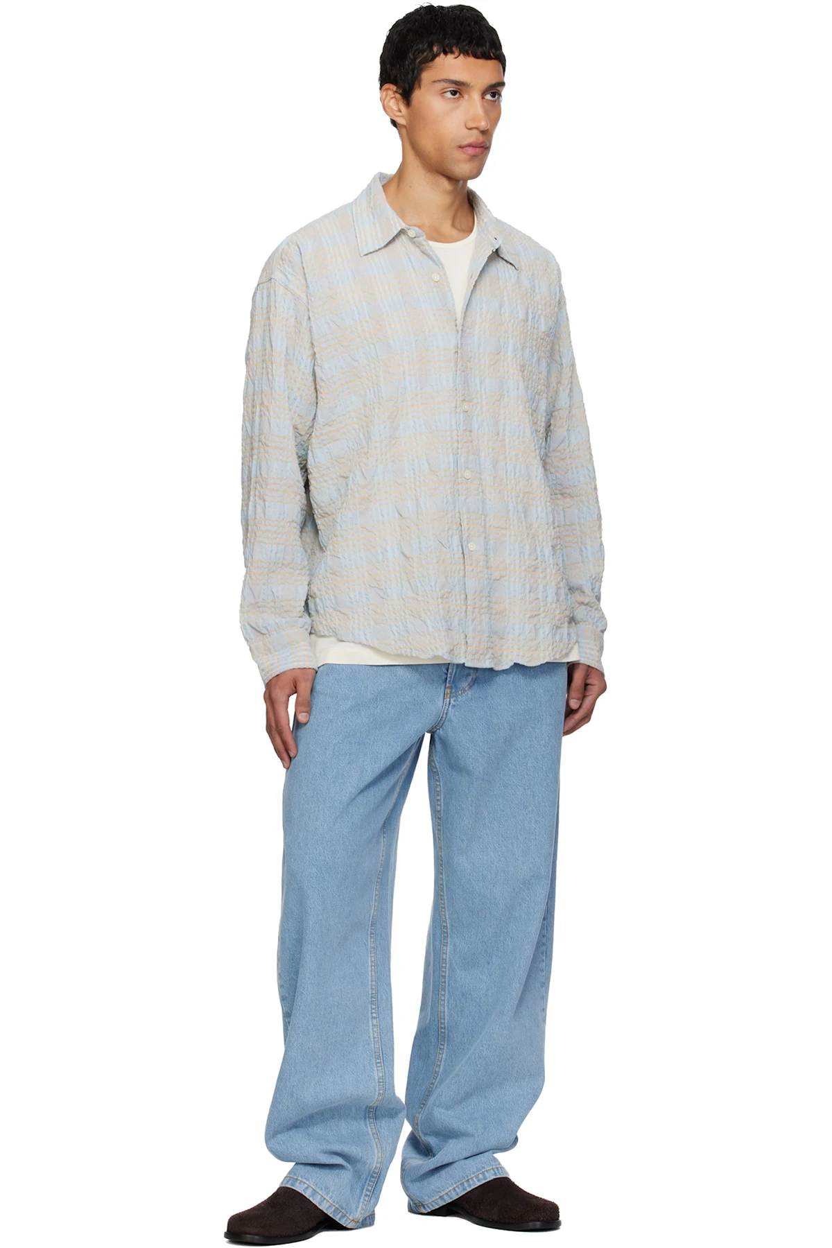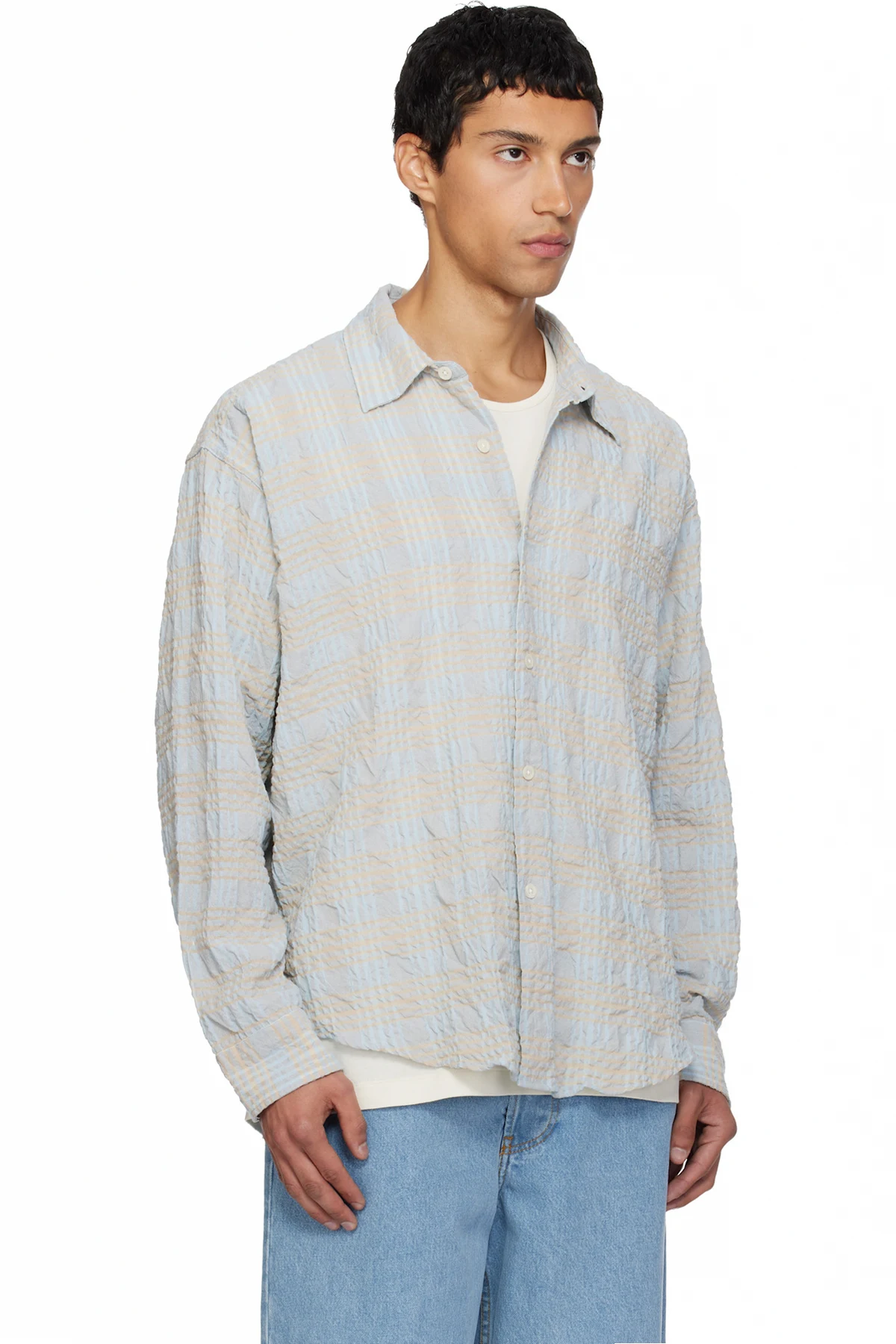 Oversized deadstock recycled cotton-blend seersucker shirt.