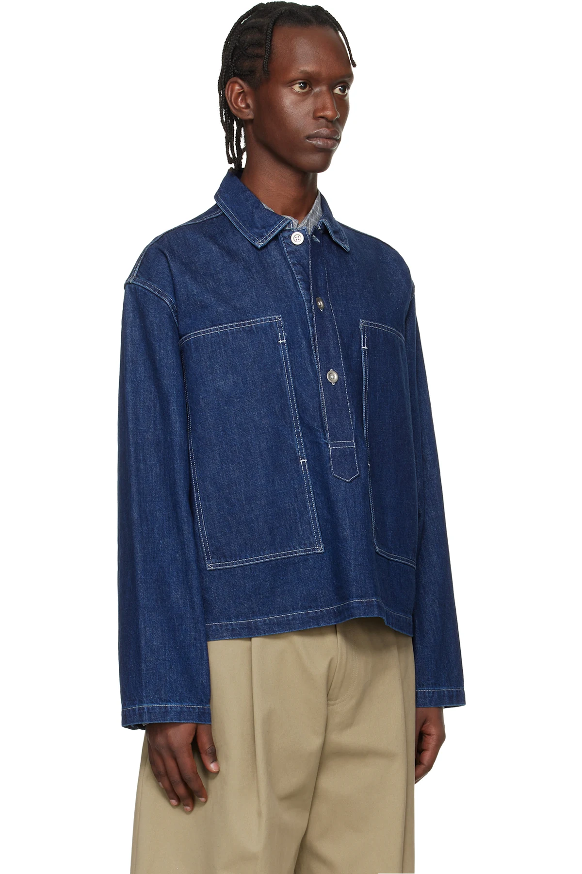 Non-stretch denim shirt.