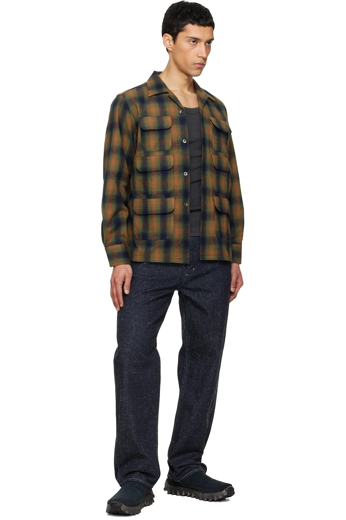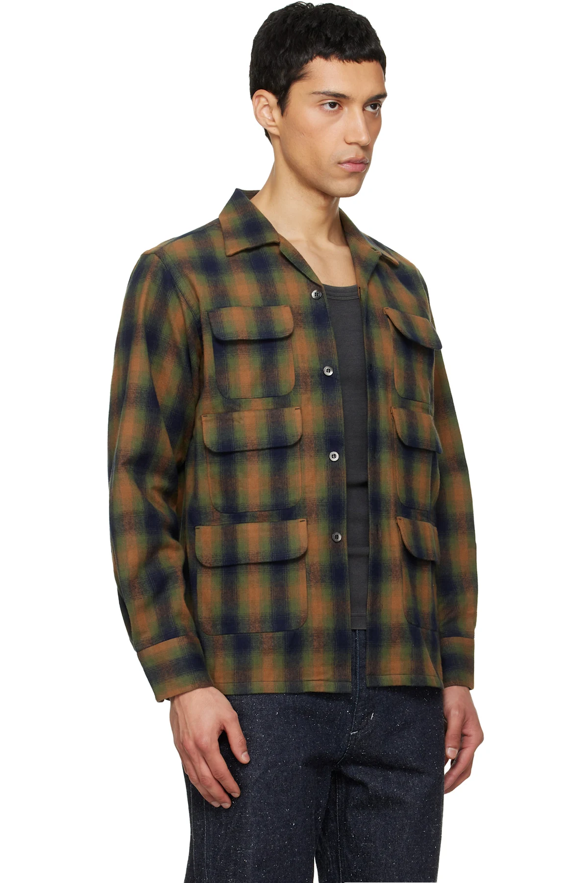 Khaki & Navy 6 Pocket Shirt