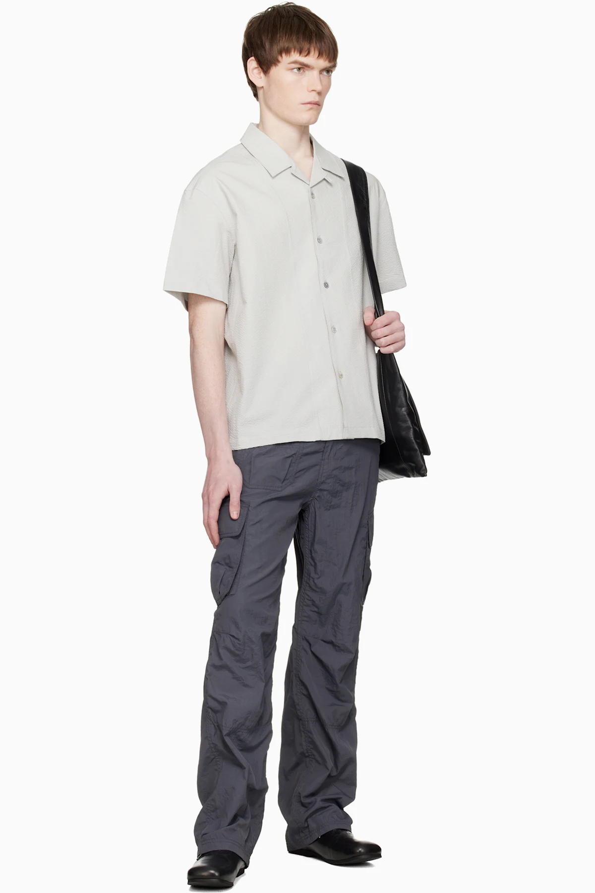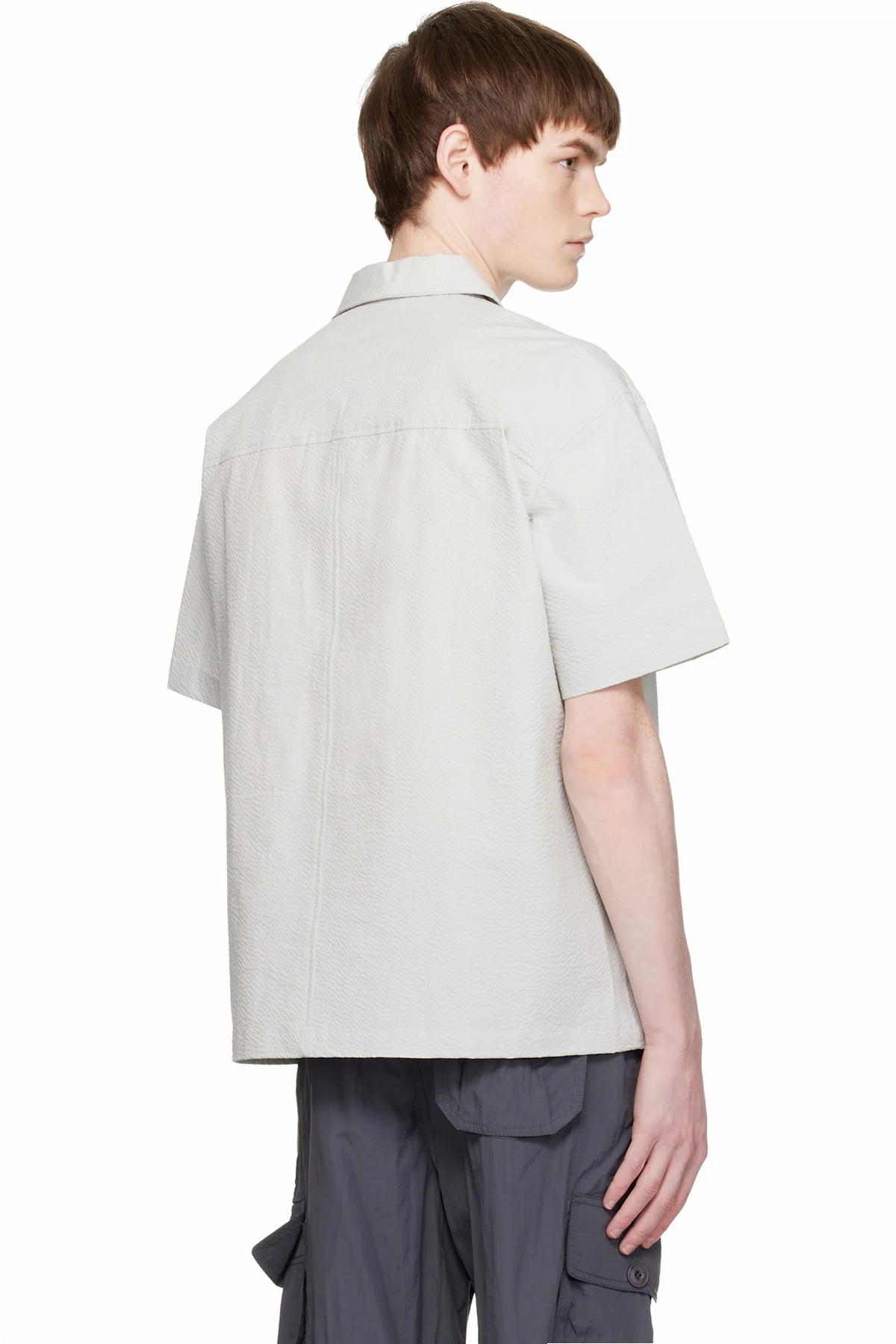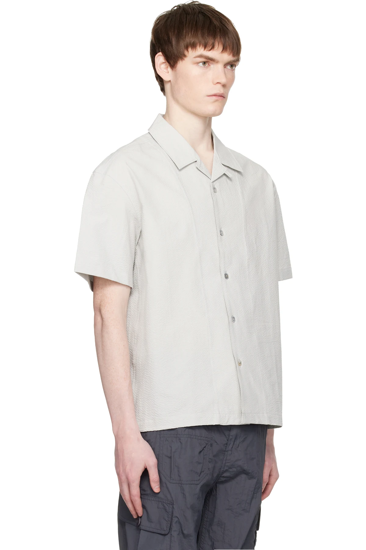 Gray Panel Line Camp Collar Half Shirt