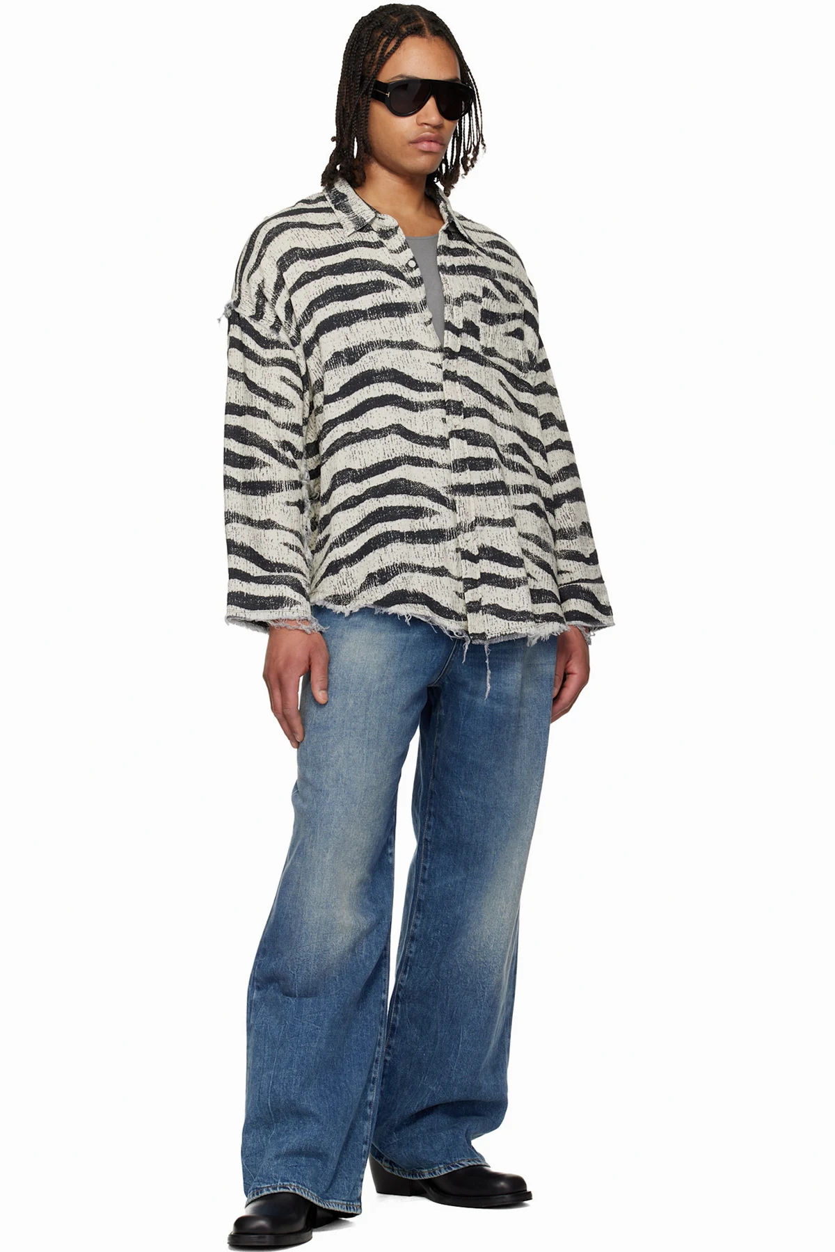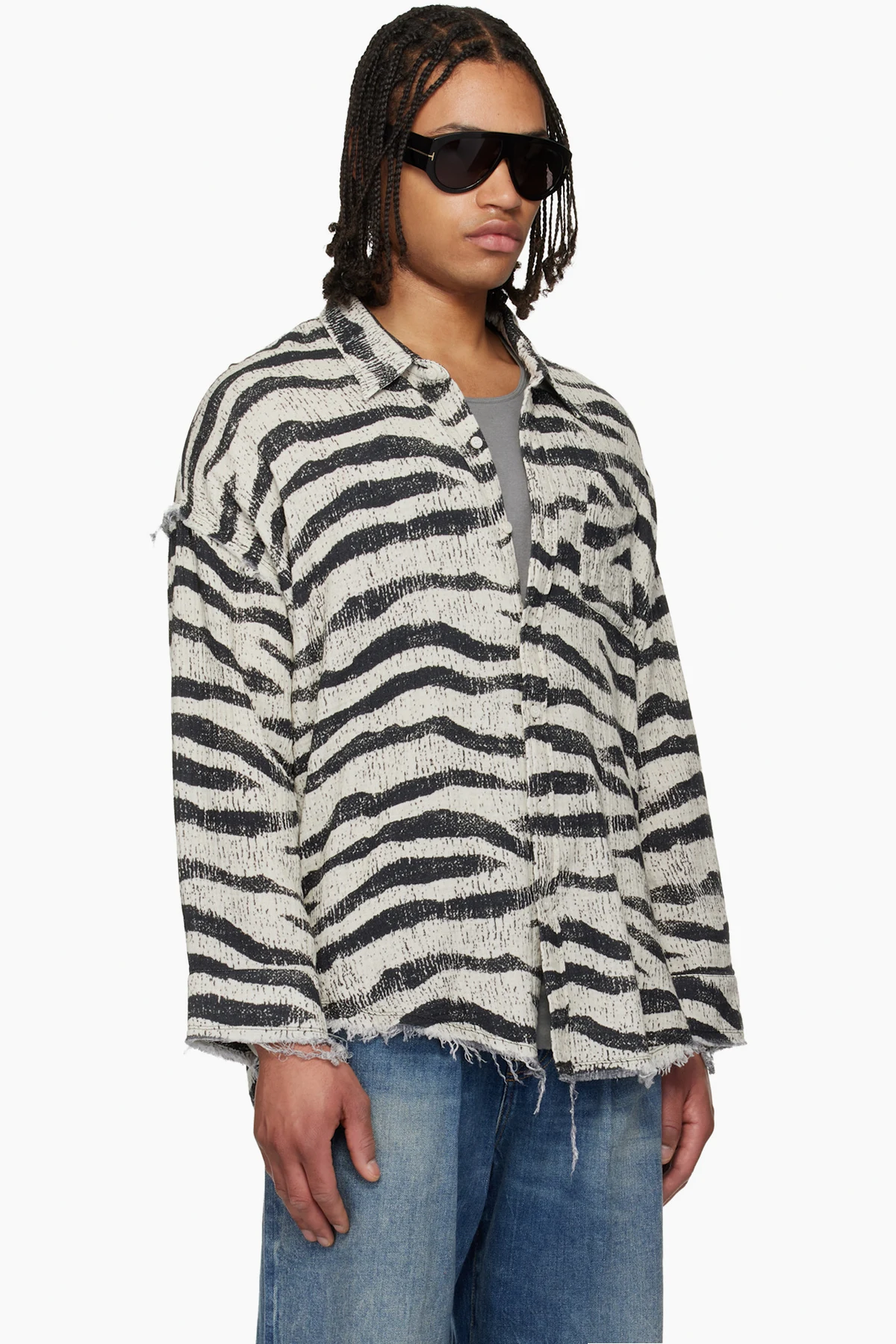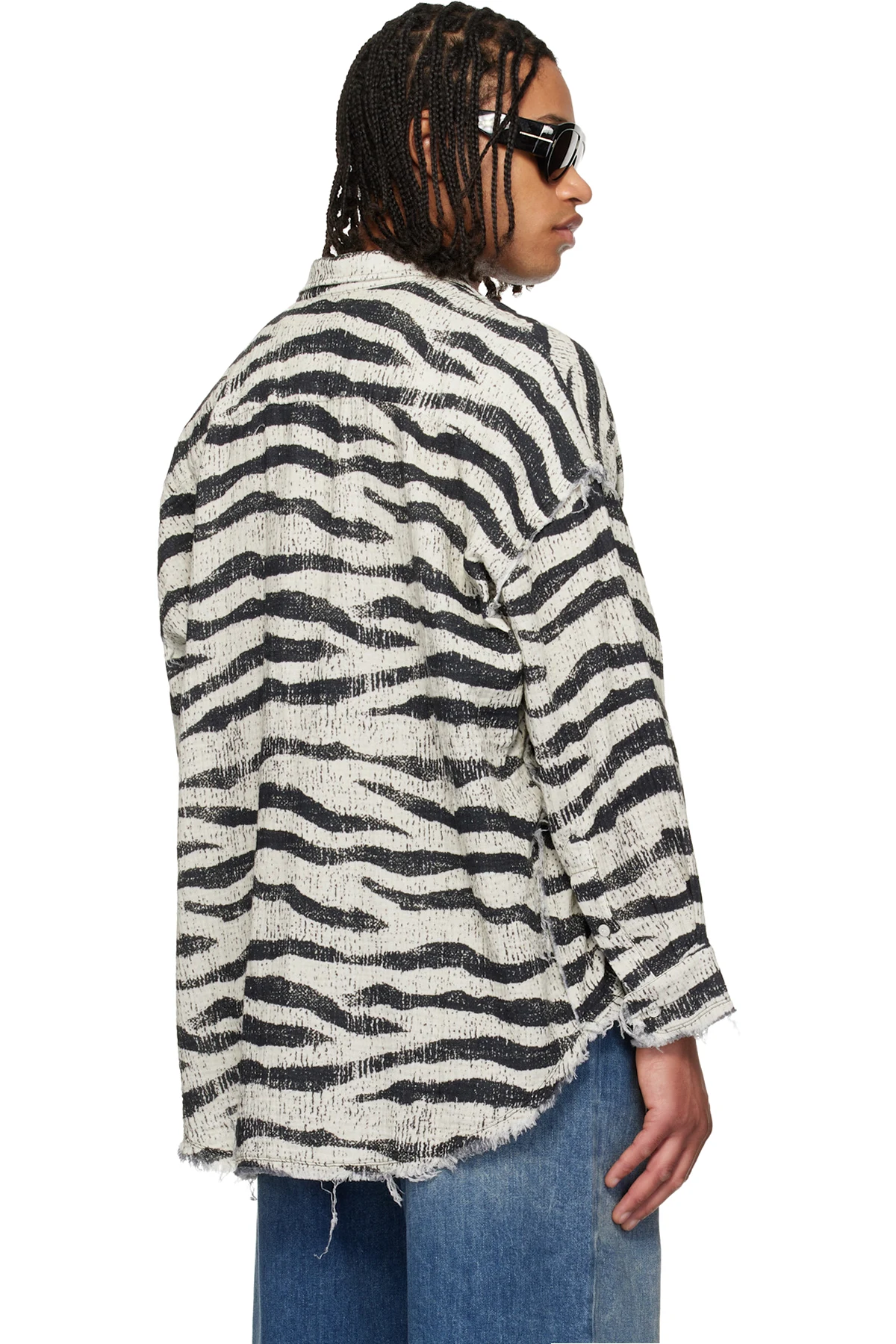 · Frayed edges and graphic pattern throughout