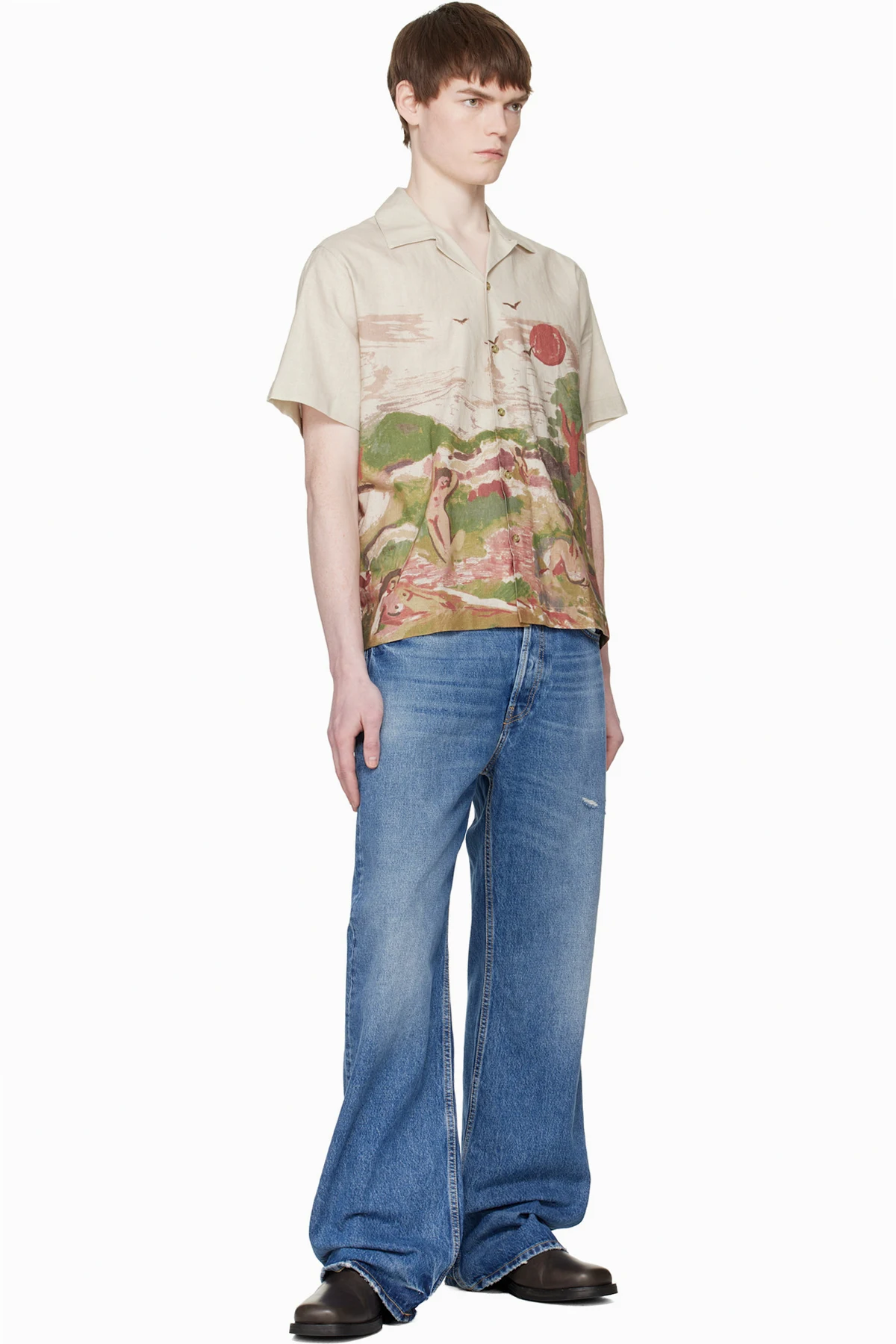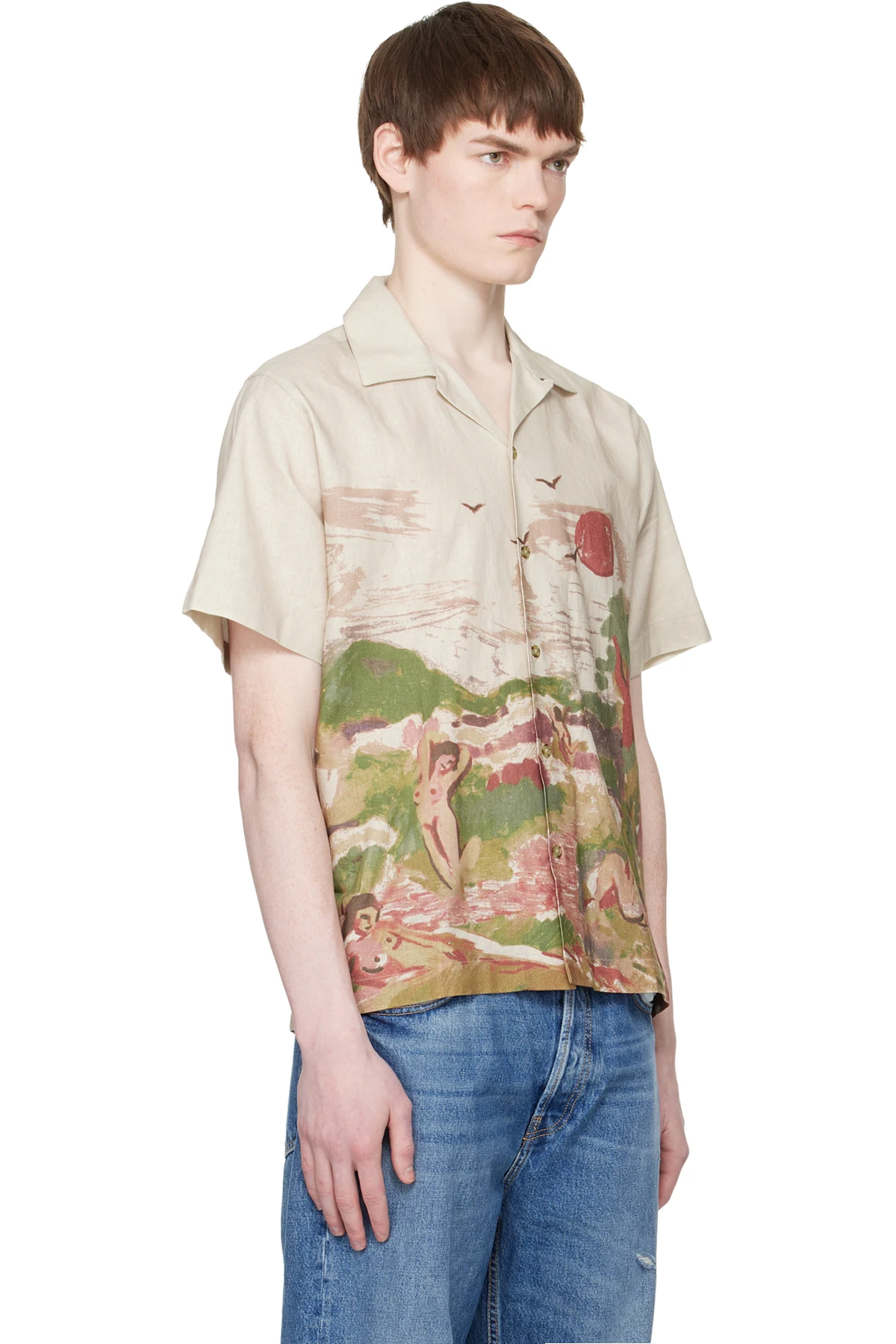 Plain-woven regenerated cellulose- and linen-blend shirt.