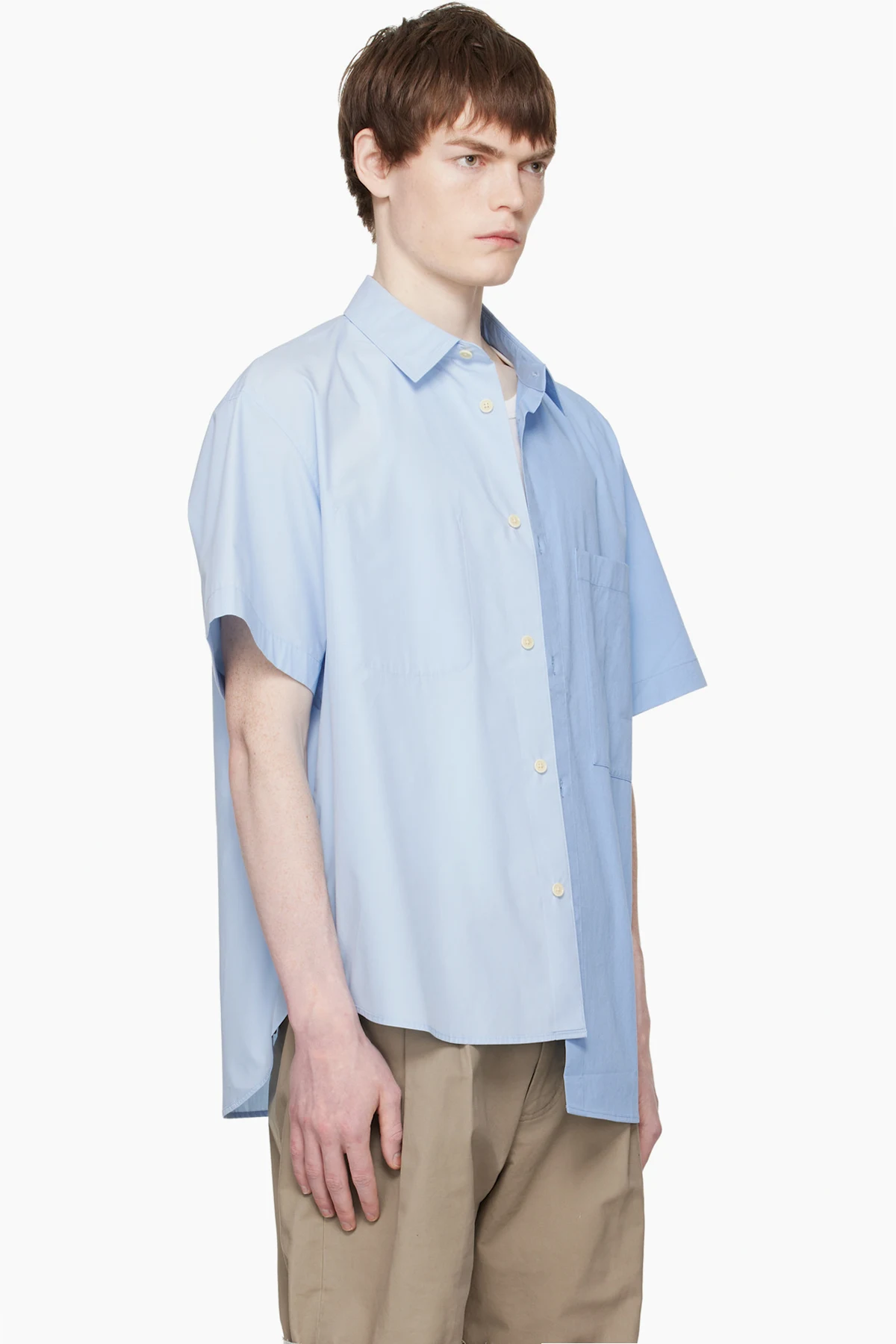 Paneled cotton twill and plain-woven shirt.