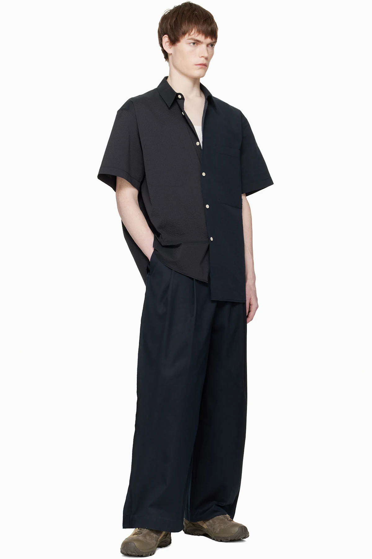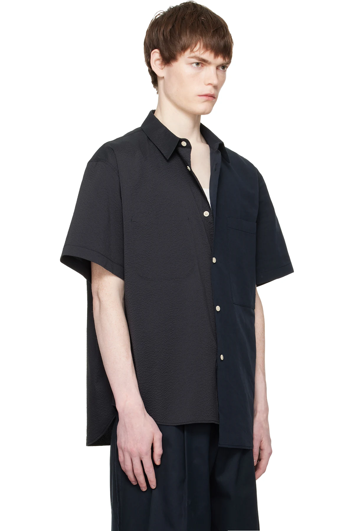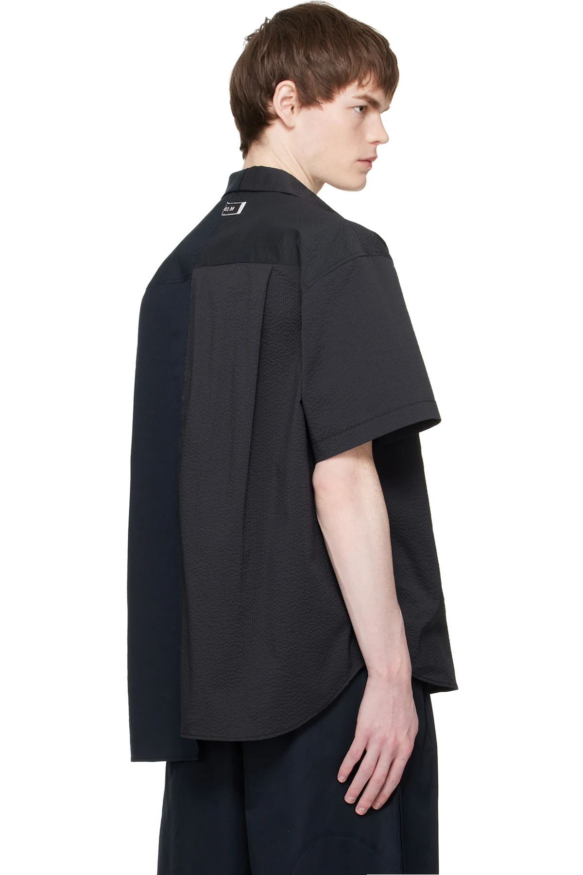 Paneled seersucker and plain-woven shirt.