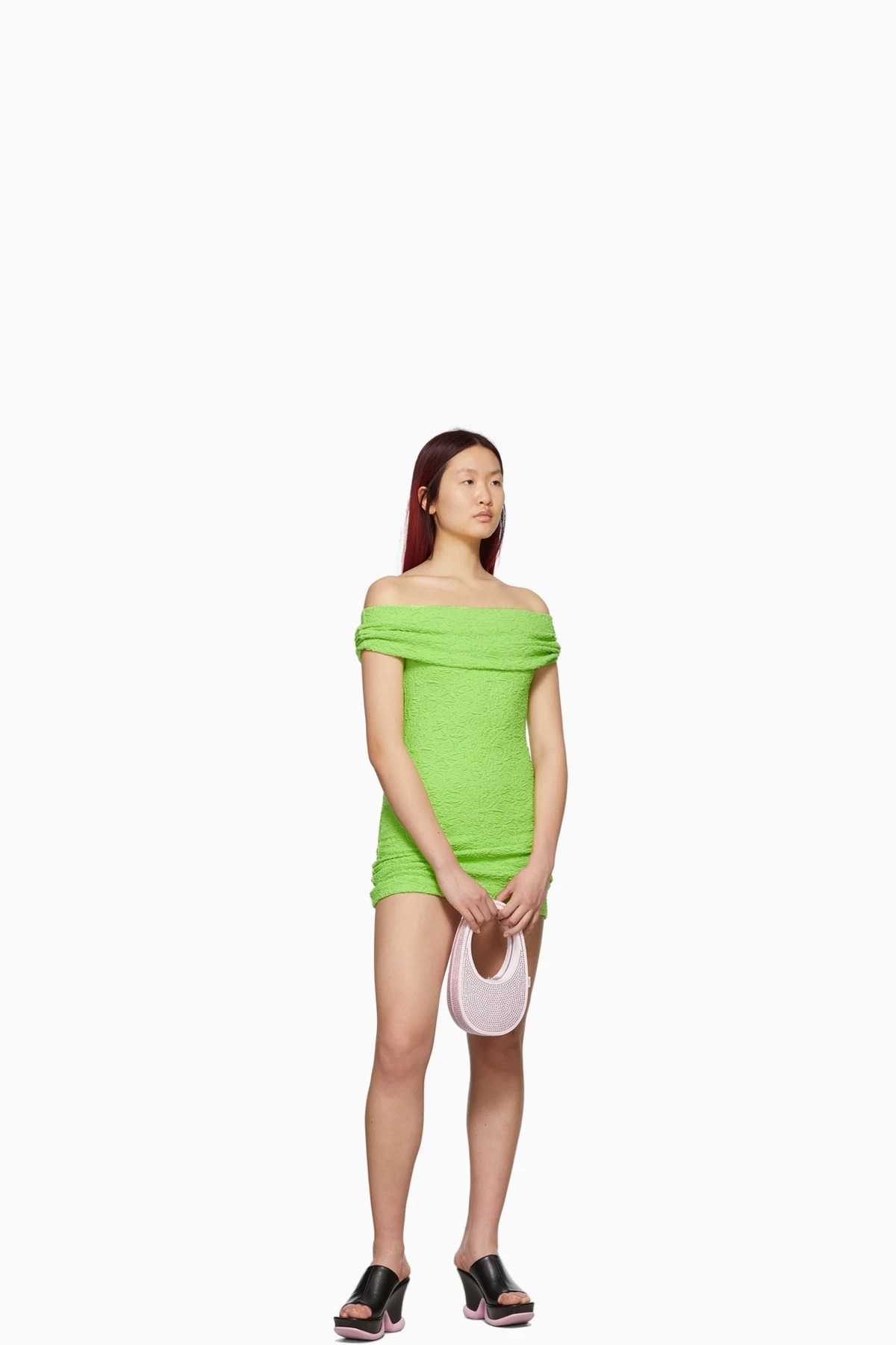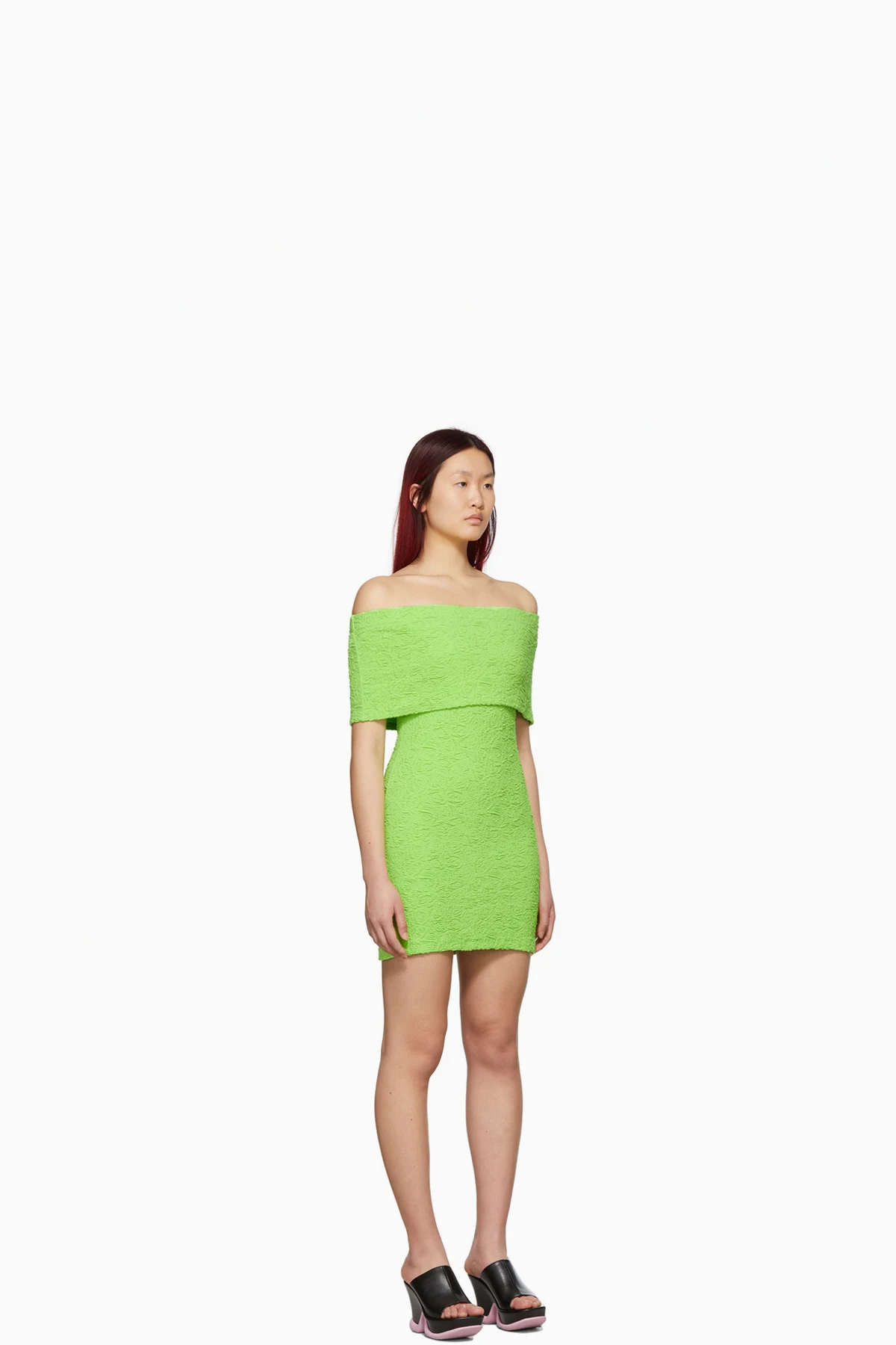 Sleeveless cotton and nylon-blend jersey off-the-shoulder short dress in green.