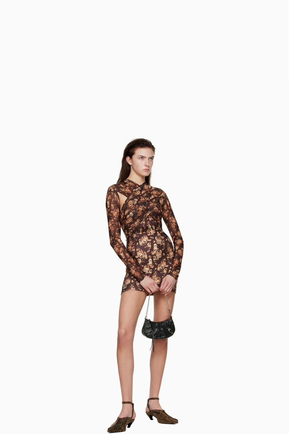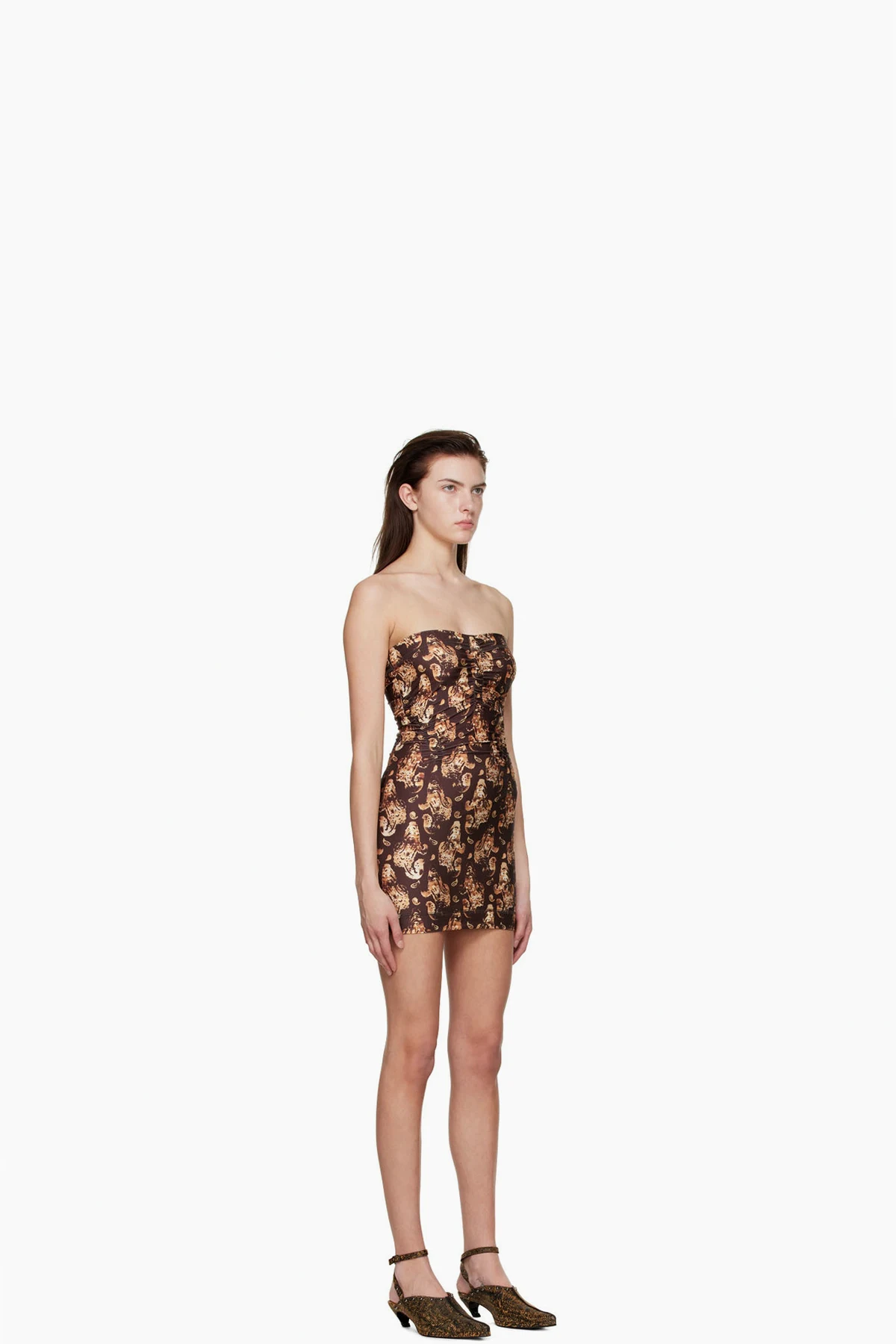 Brown Polyester Mini Dress