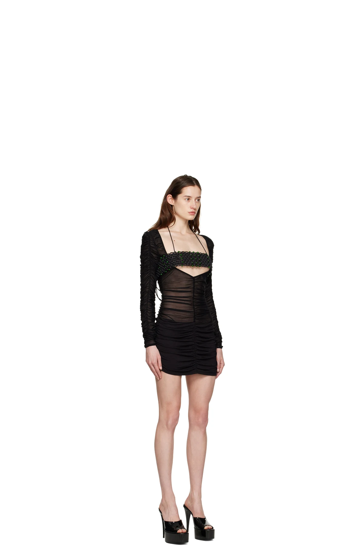 Off-White Short Sleeve Silk Mousseline & Lace Minidress