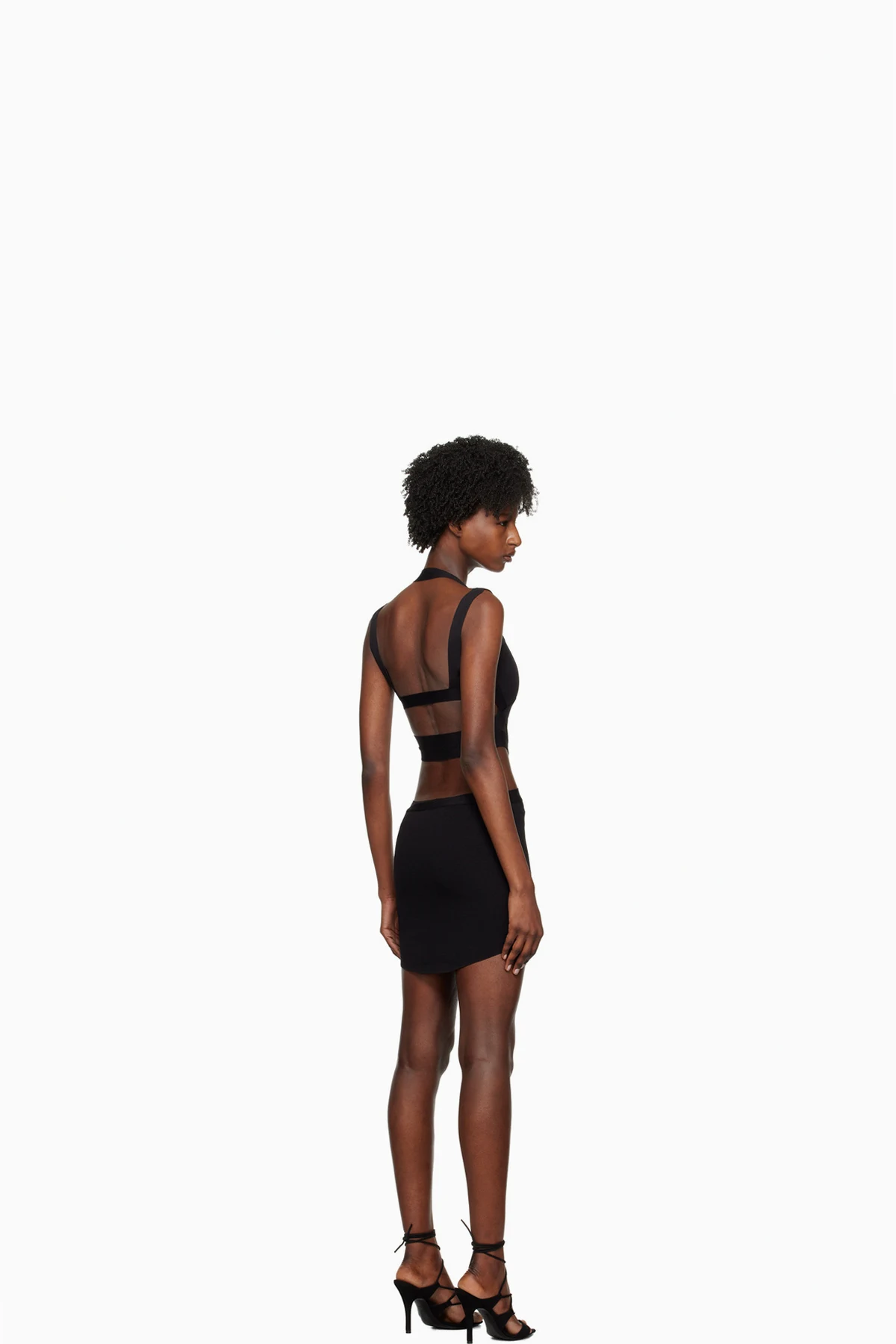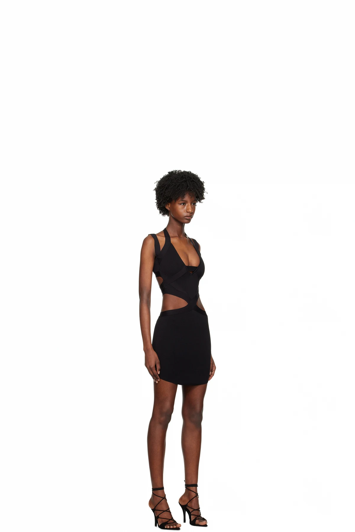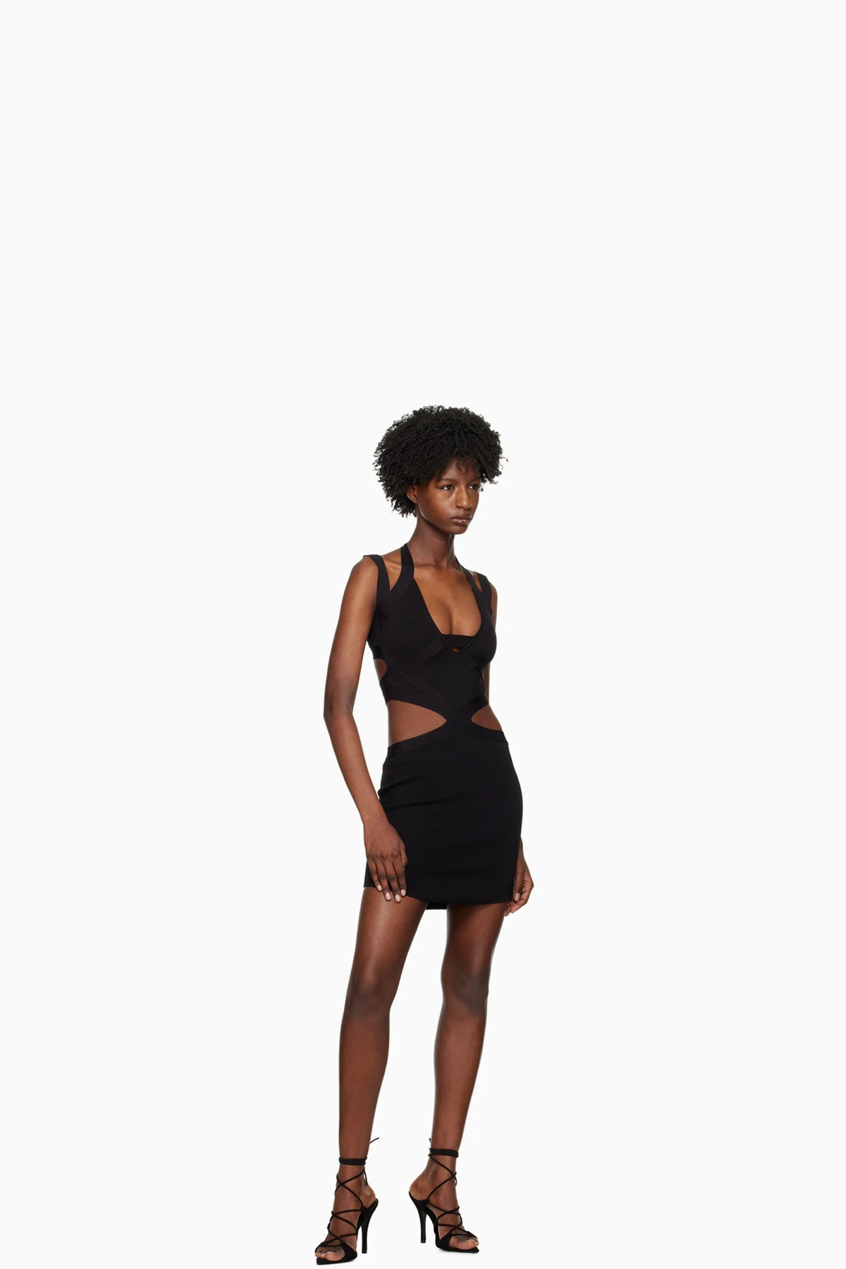 Knit rayon- and nylon-blend dress. Cutouts throughout.