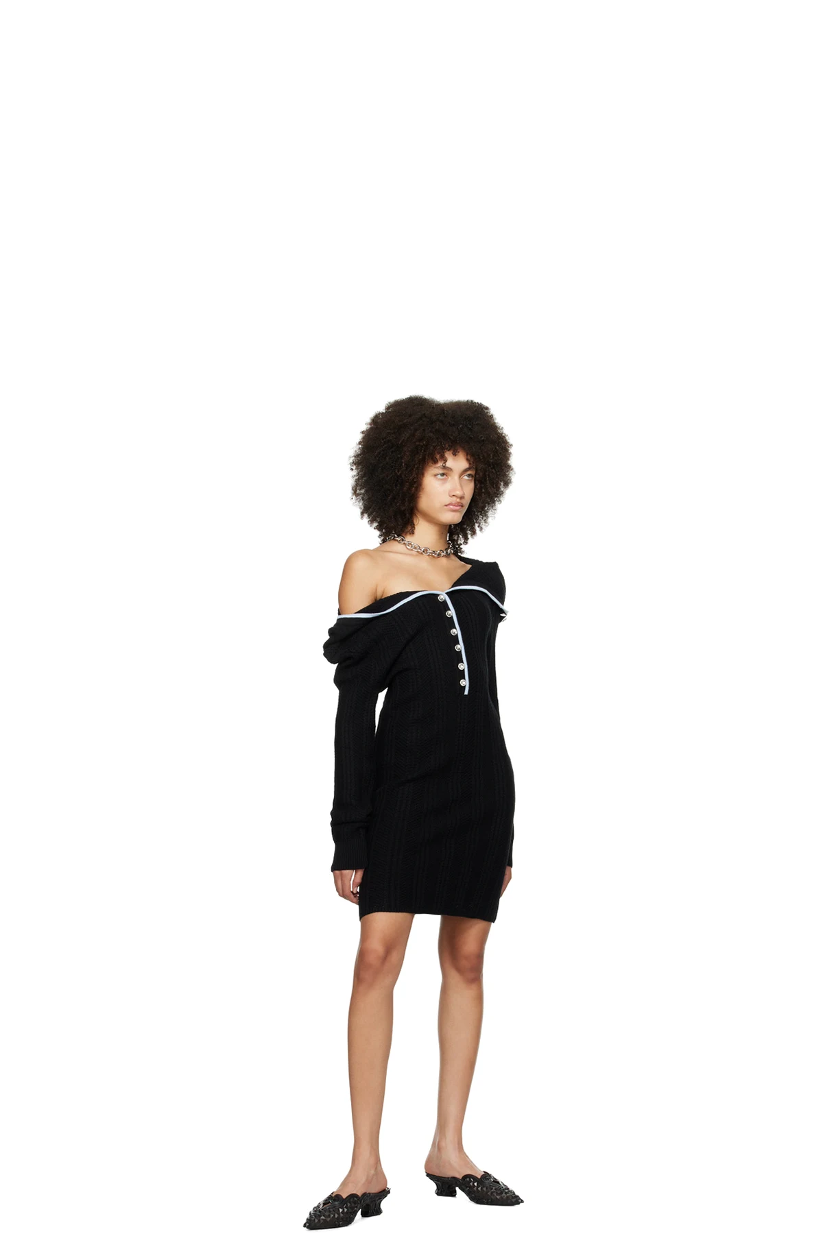 Black Ruffle Necklace Minidress