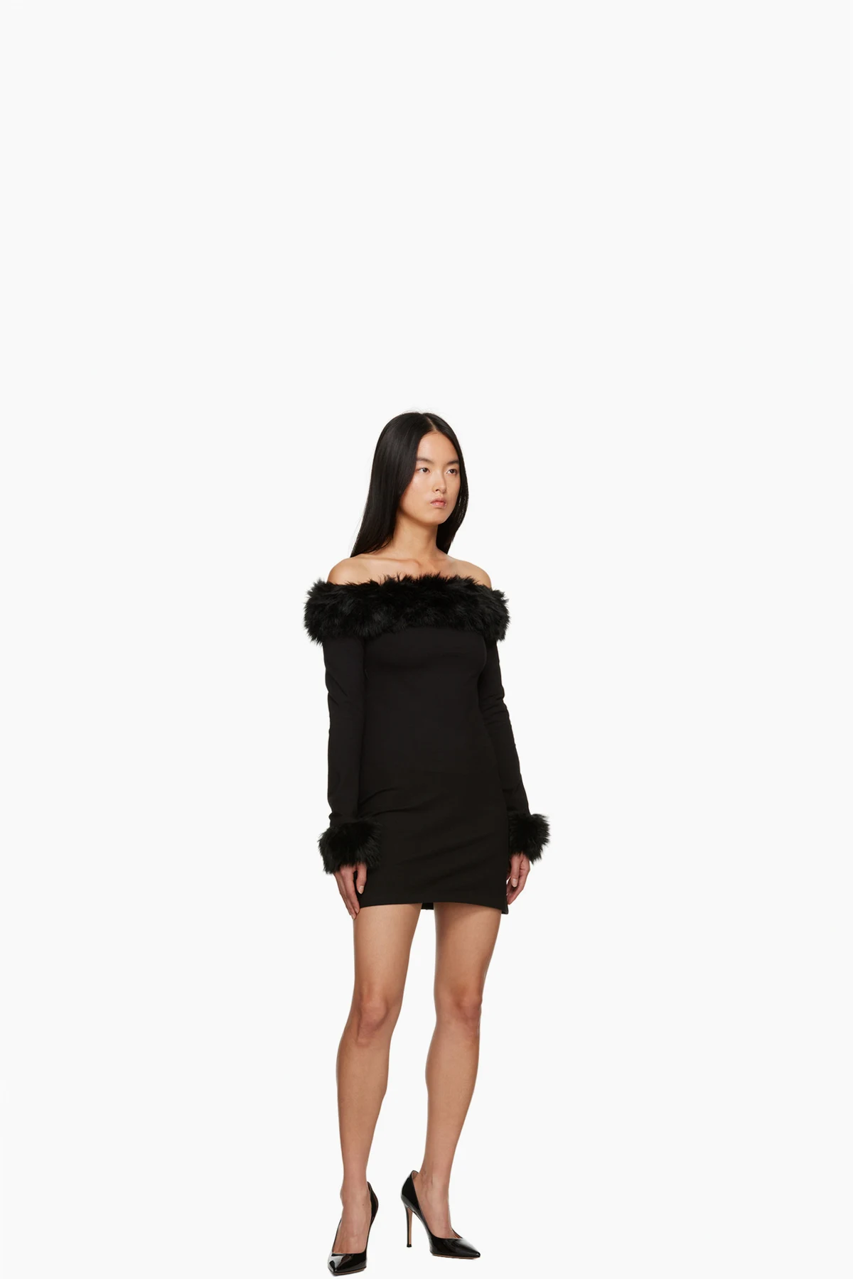 Stretch cotton jersey dress. Faux-fur trim throughout.