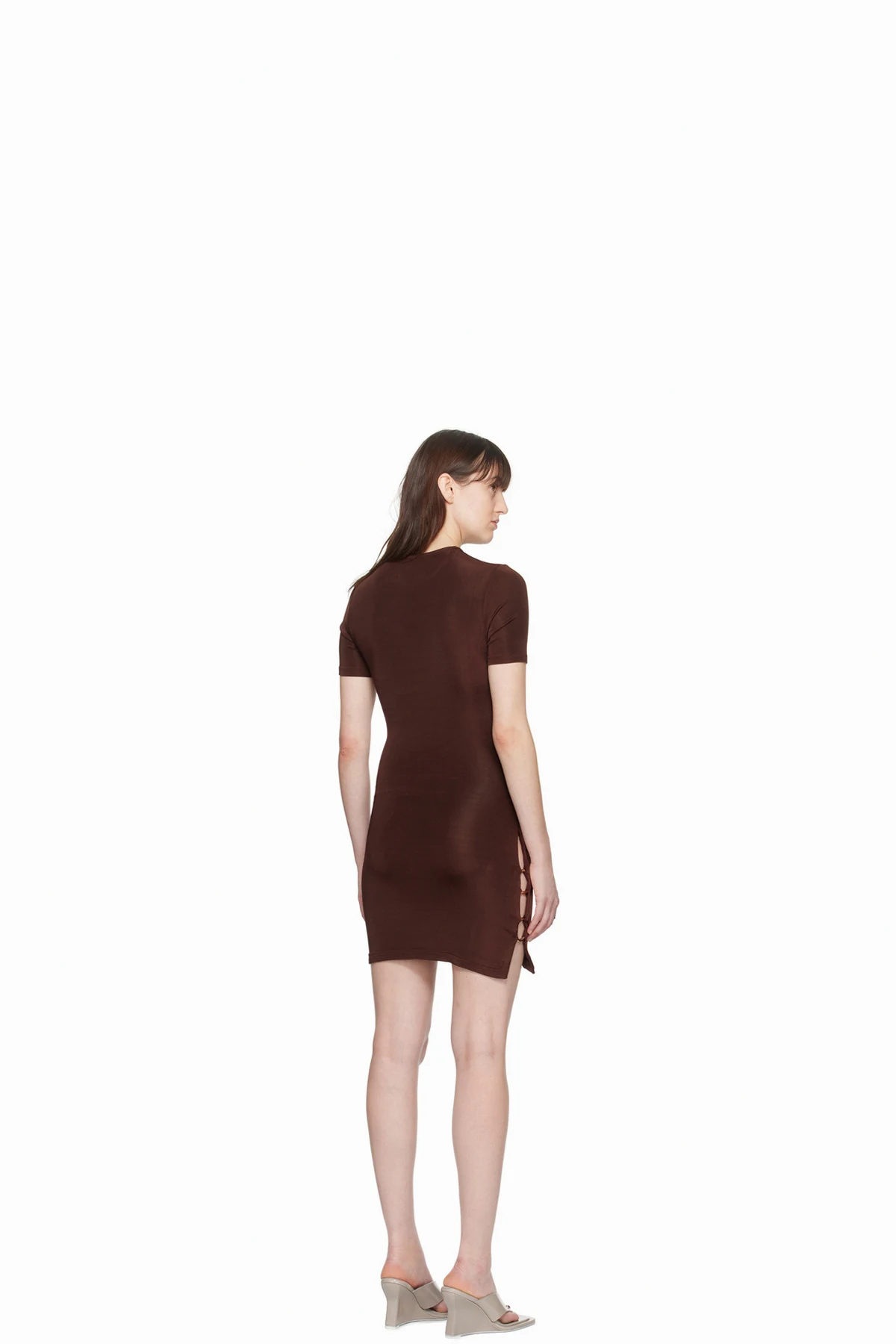 Off-White Short Sleeve Silk Mousseline & Lace Minidress