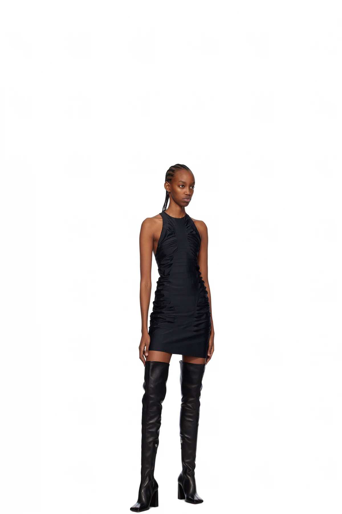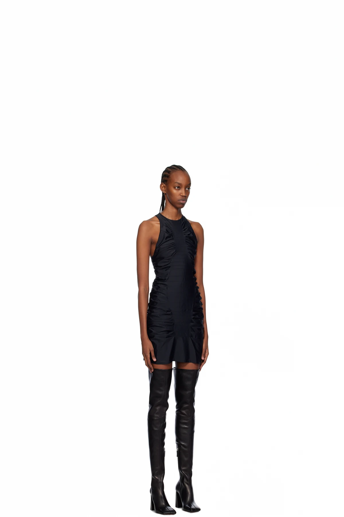 Stretch nylon jersey dress. Pleats throughout.