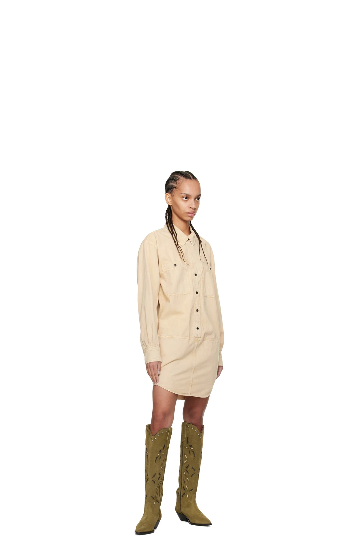 Off-White Short Sleeve Silk Mousseline & Lace Minidress