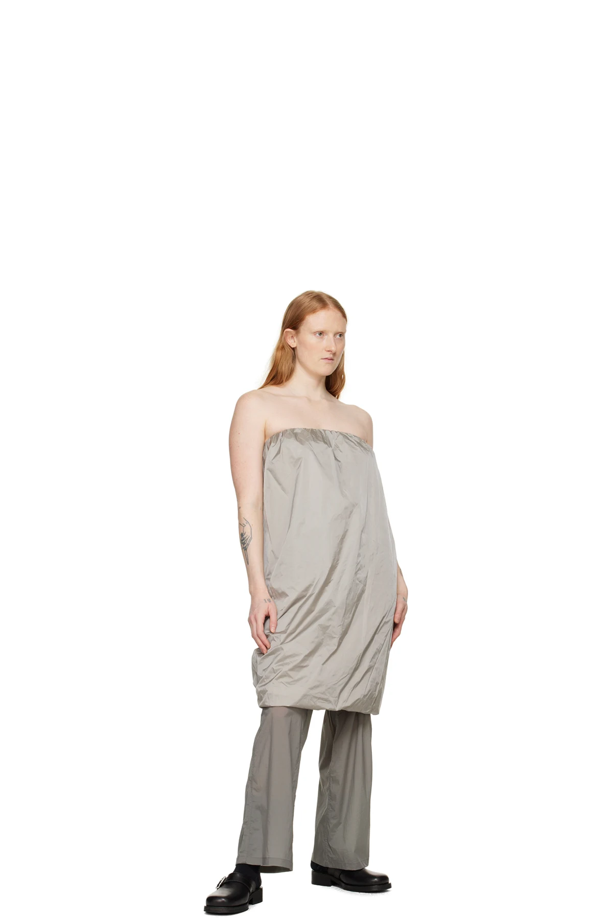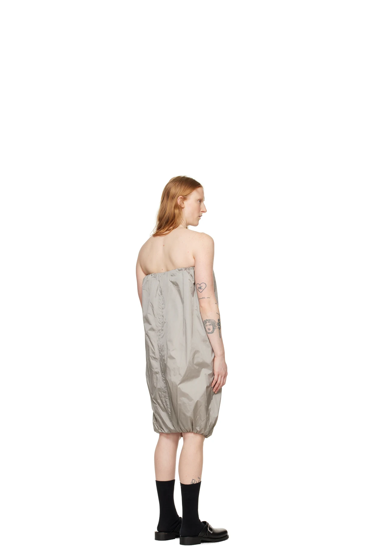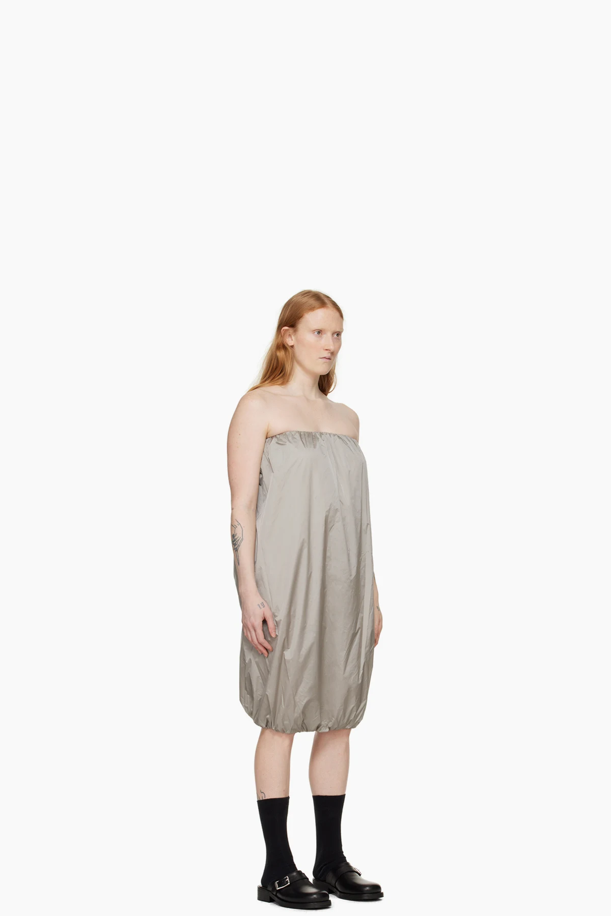Nylon taffeta dress. Shirring throughout.