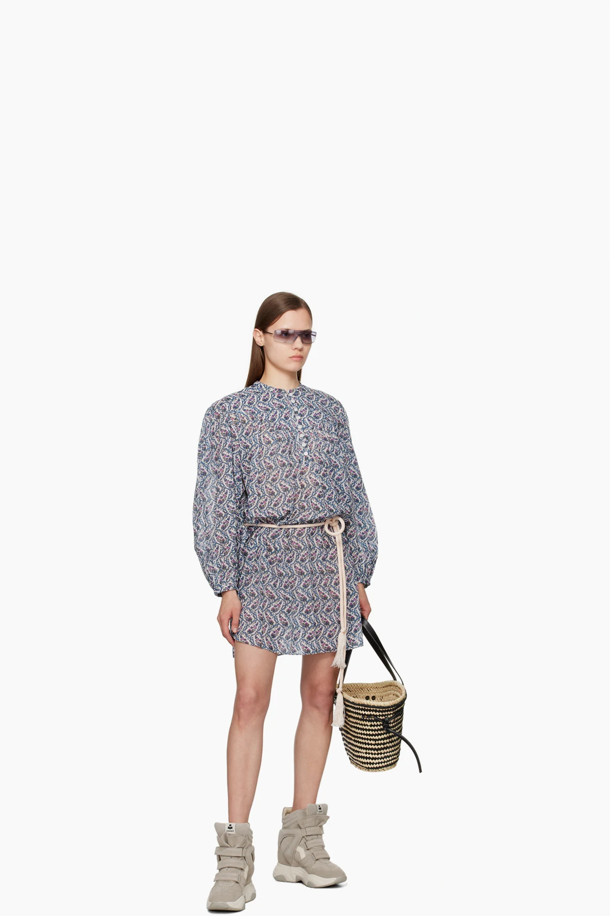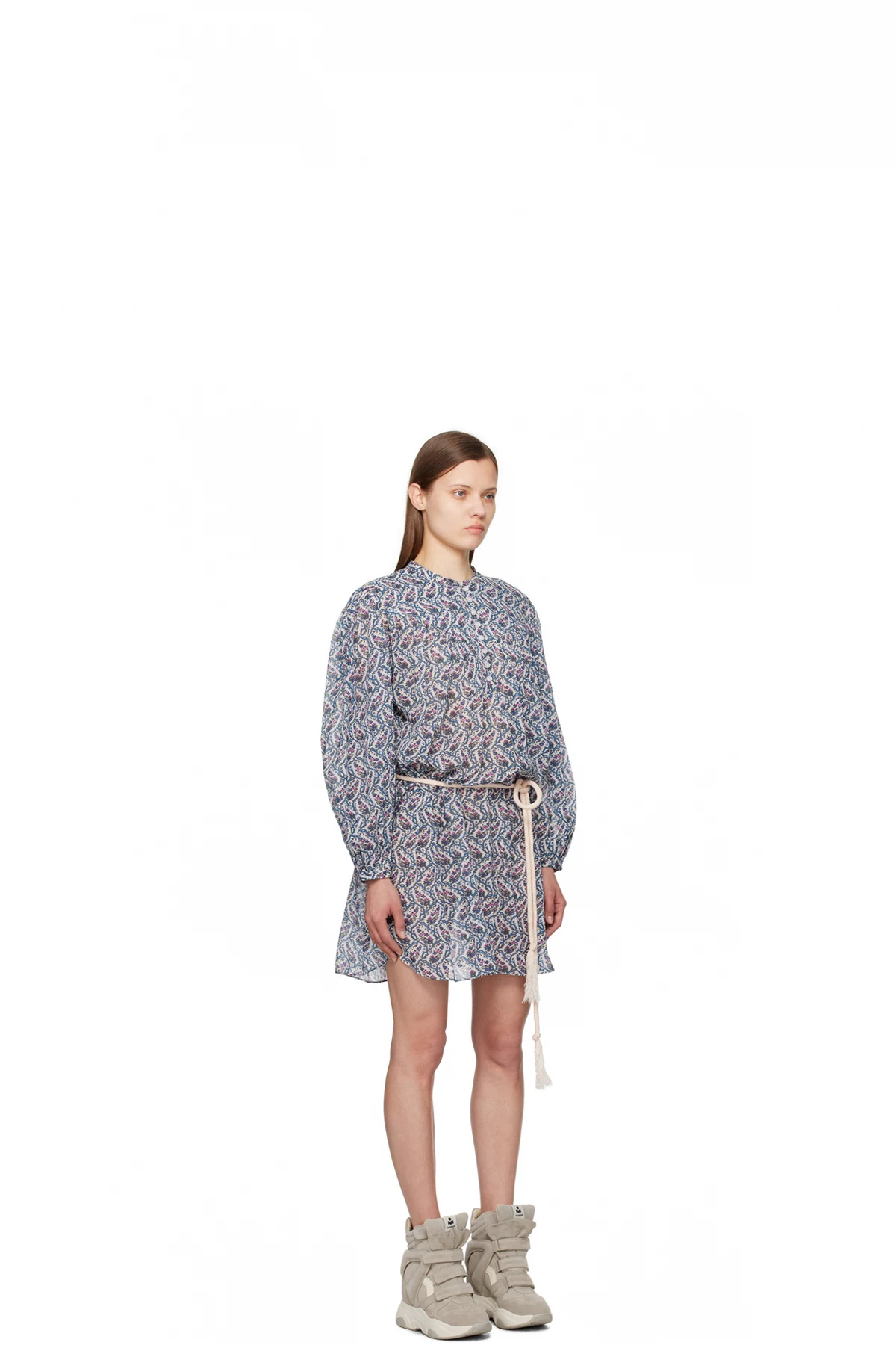 Cotton voile dress. Gathering and floral pattern printed throughout.