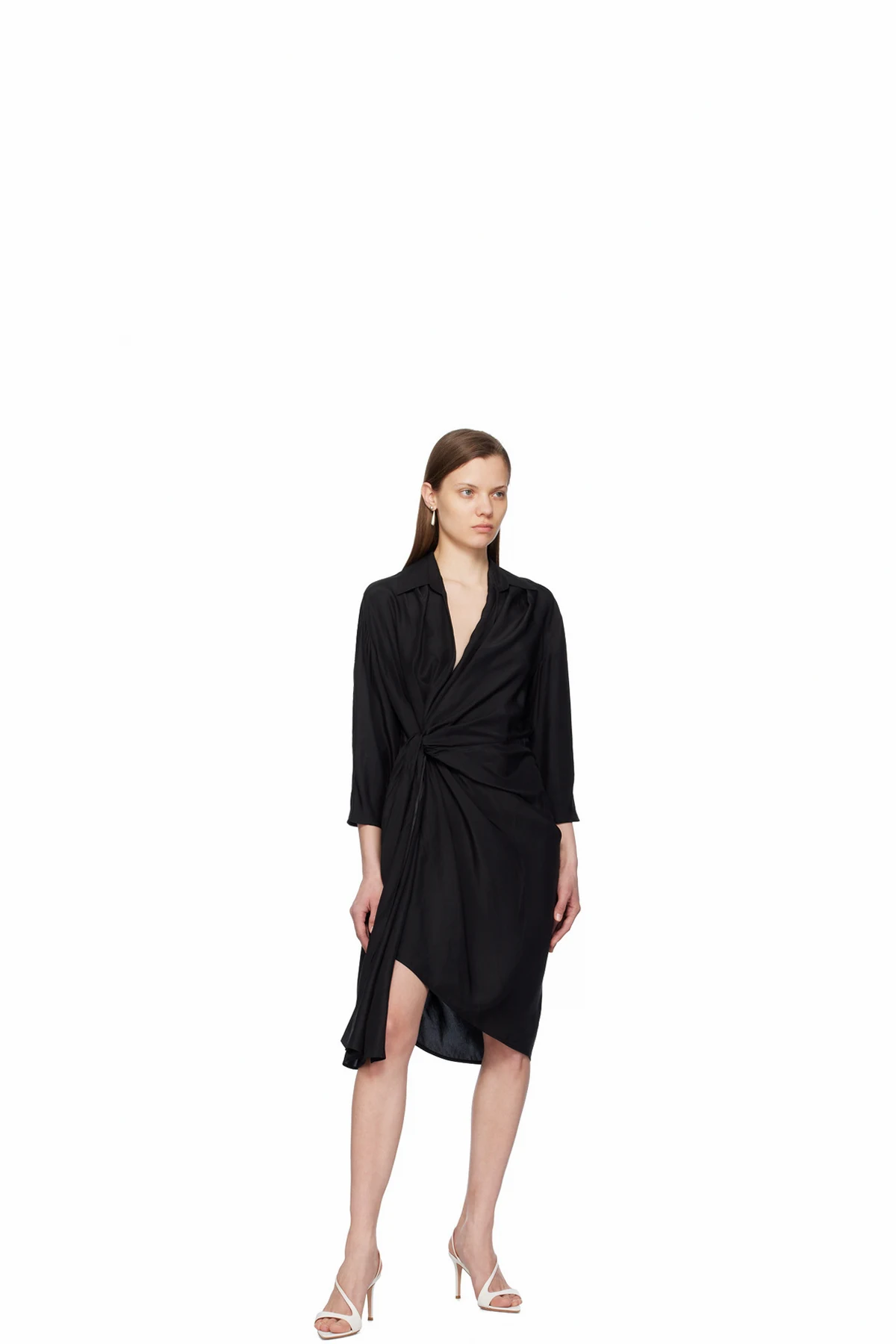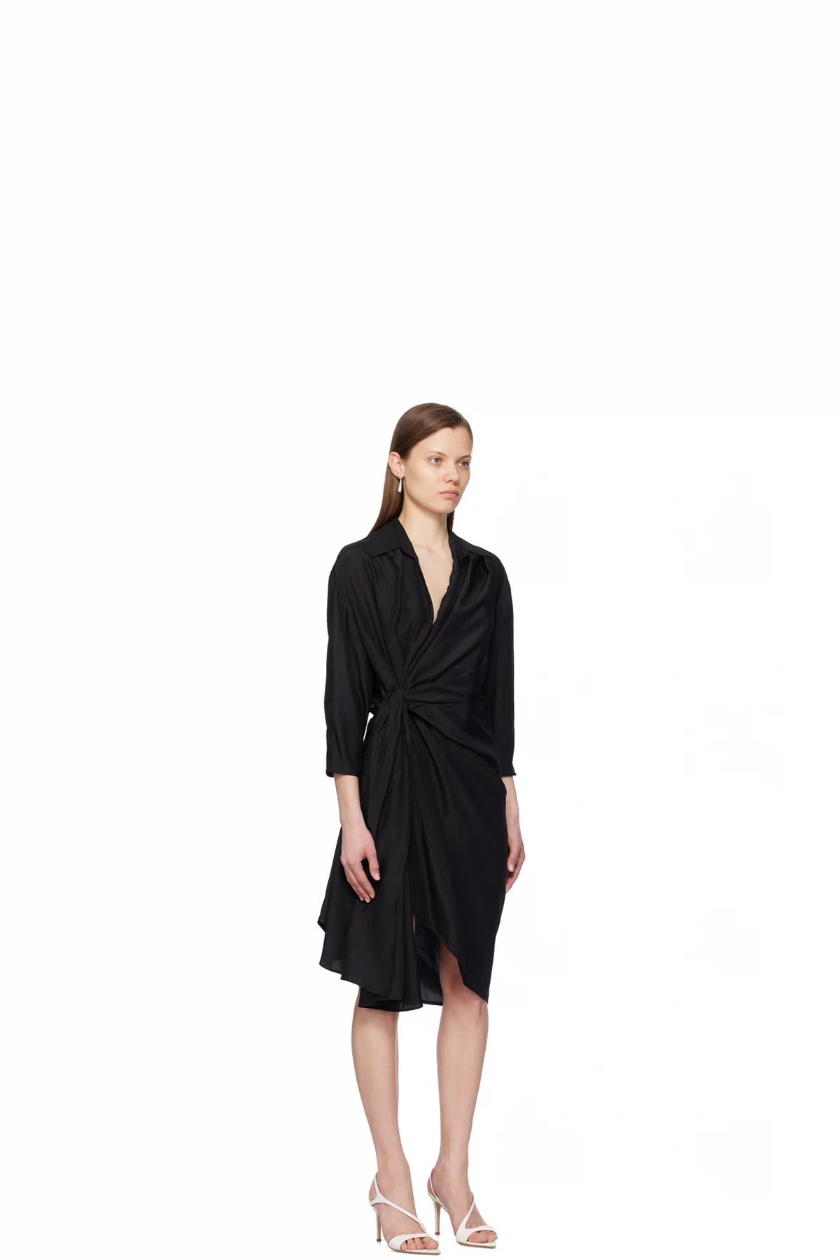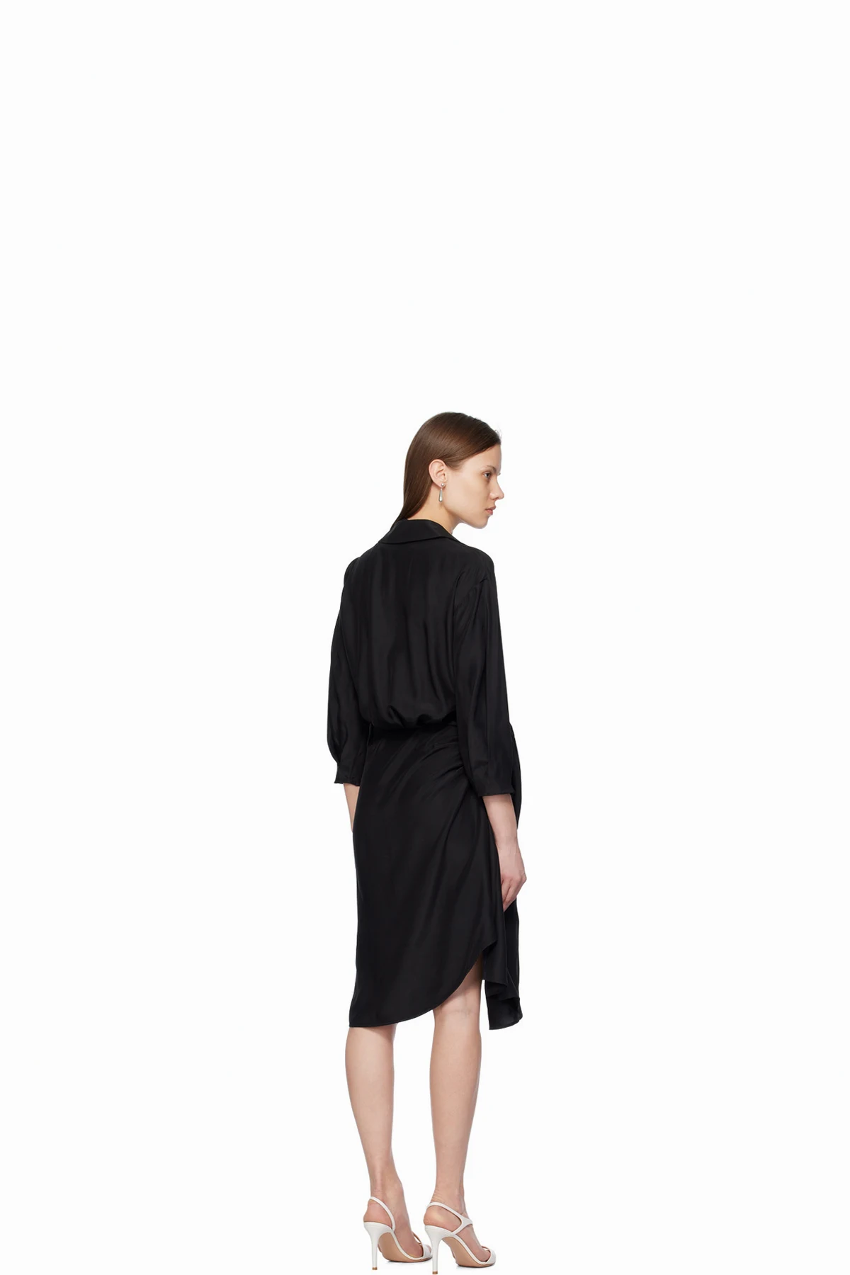 Silk crepe de chine dress. Pleats and gathering throughout.
