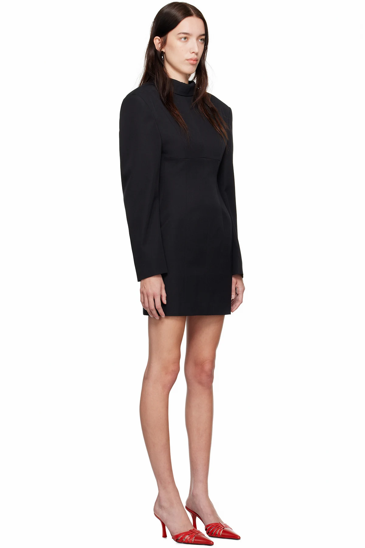 Slim-fit plain-woven virgin wool minidress. Darting throughout.