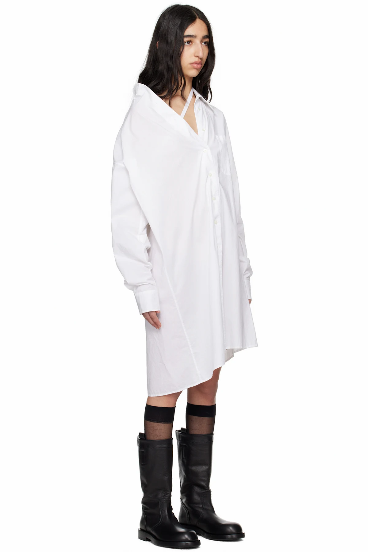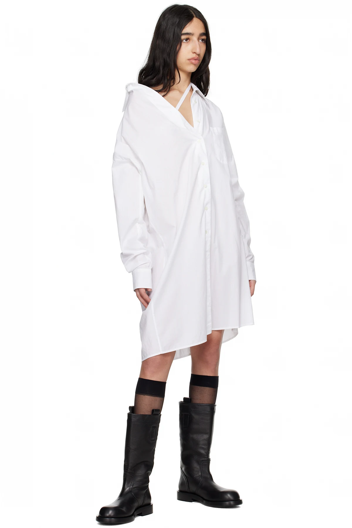 Off-White Short Sleeve Silk Mousseline & Lace Minidress