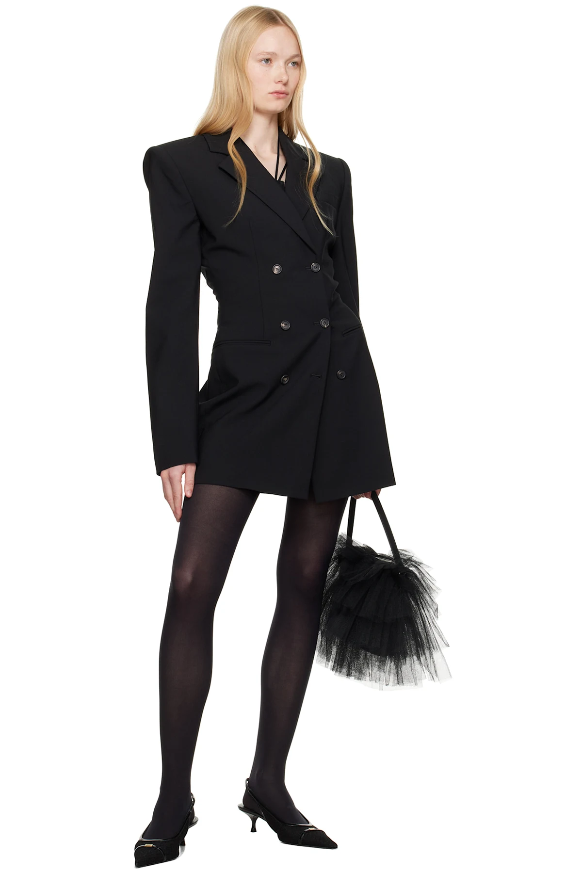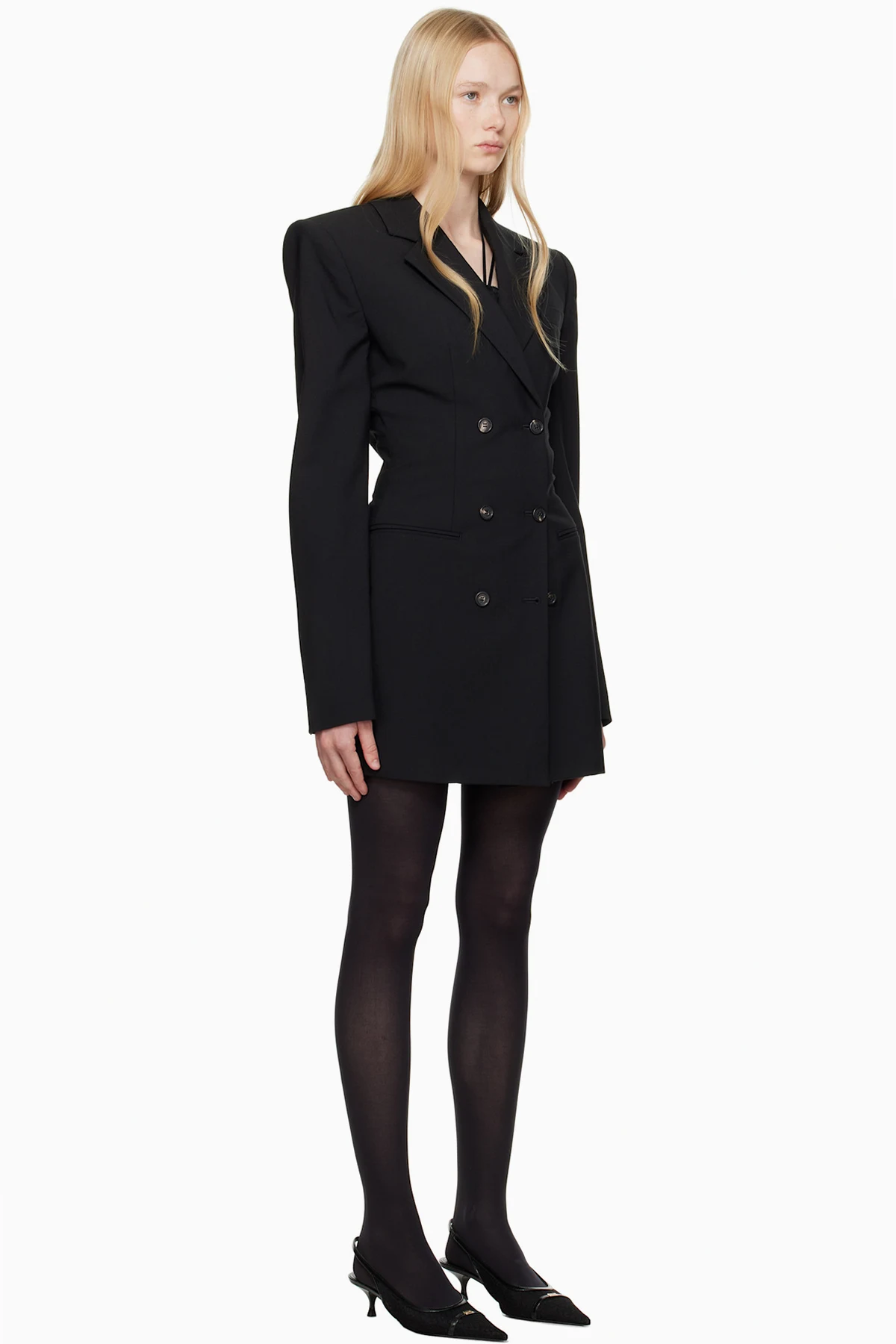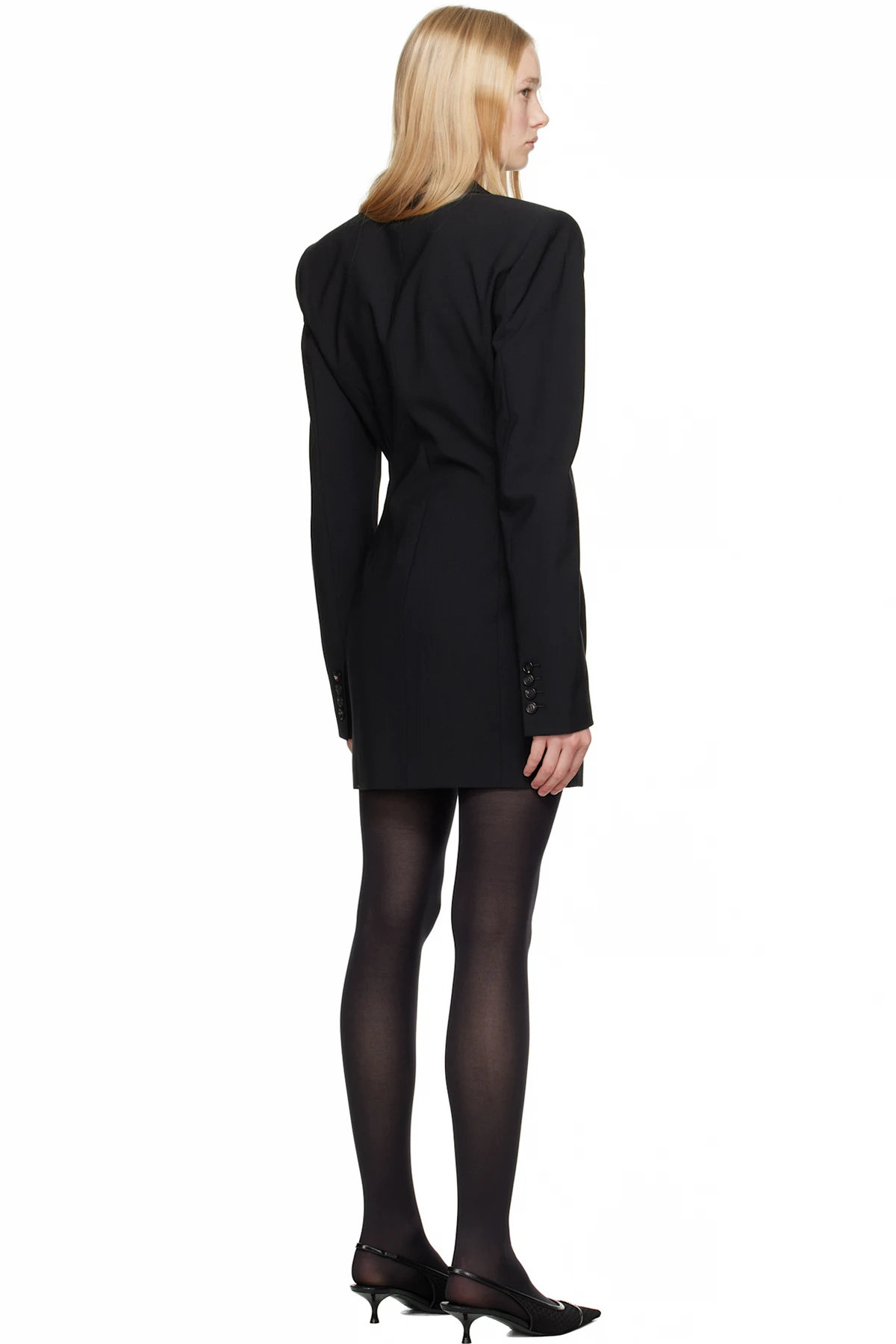 Plain-woven stretch polyester- and virgin wool-blend minidress.