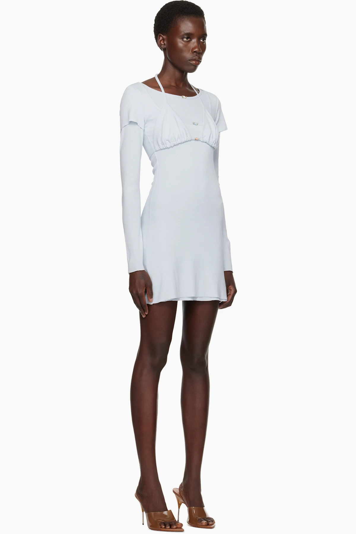 Set of two cotton jersey minidresses. Includes self-tie bikini-style top.