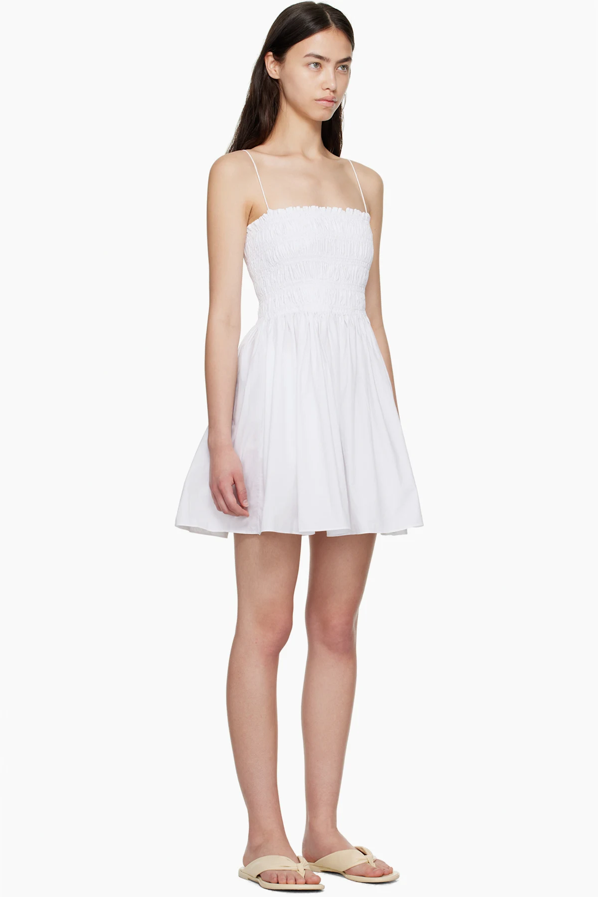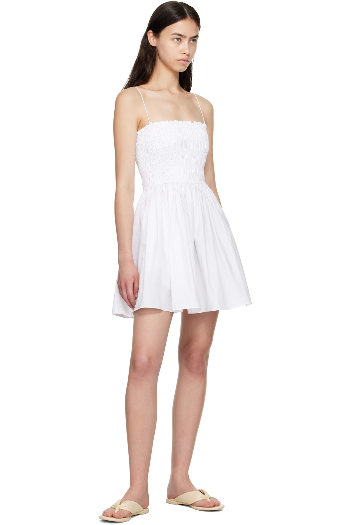 Off-White Short Sleeve Silk Mousseline & Lace Minidress