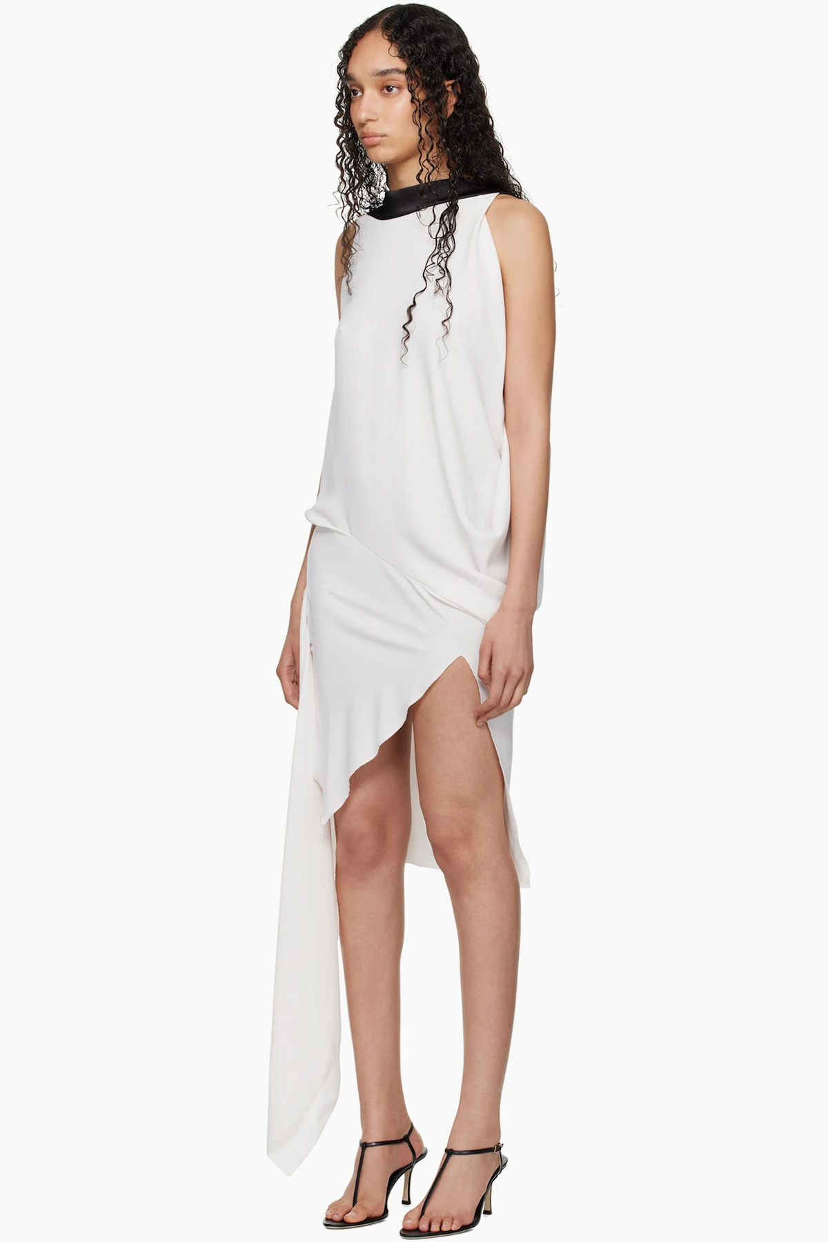 Off-White Short Sleeve Silk Mousseline & Lace Minidress