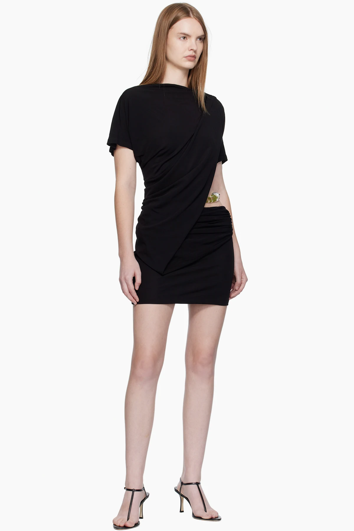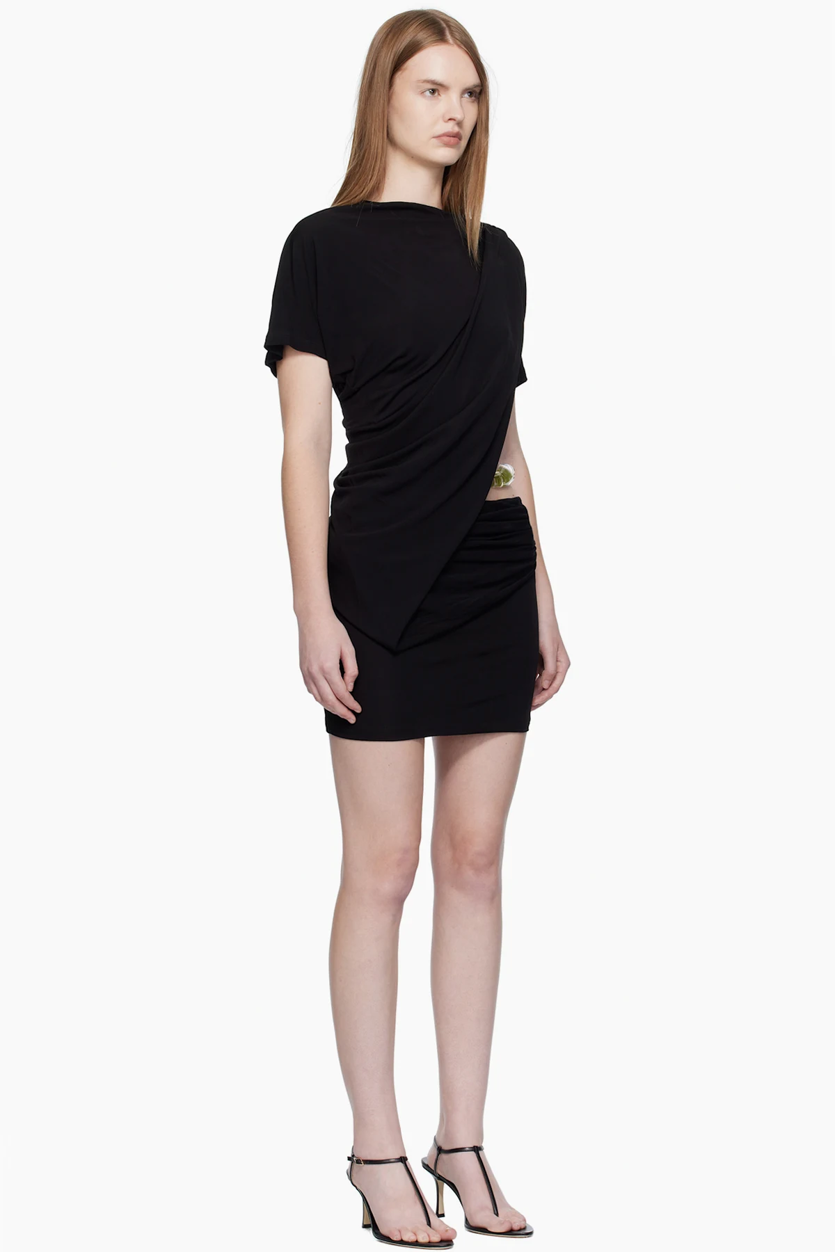 Off-White Short Sleeve Silk Mousseline & Lace Minidress