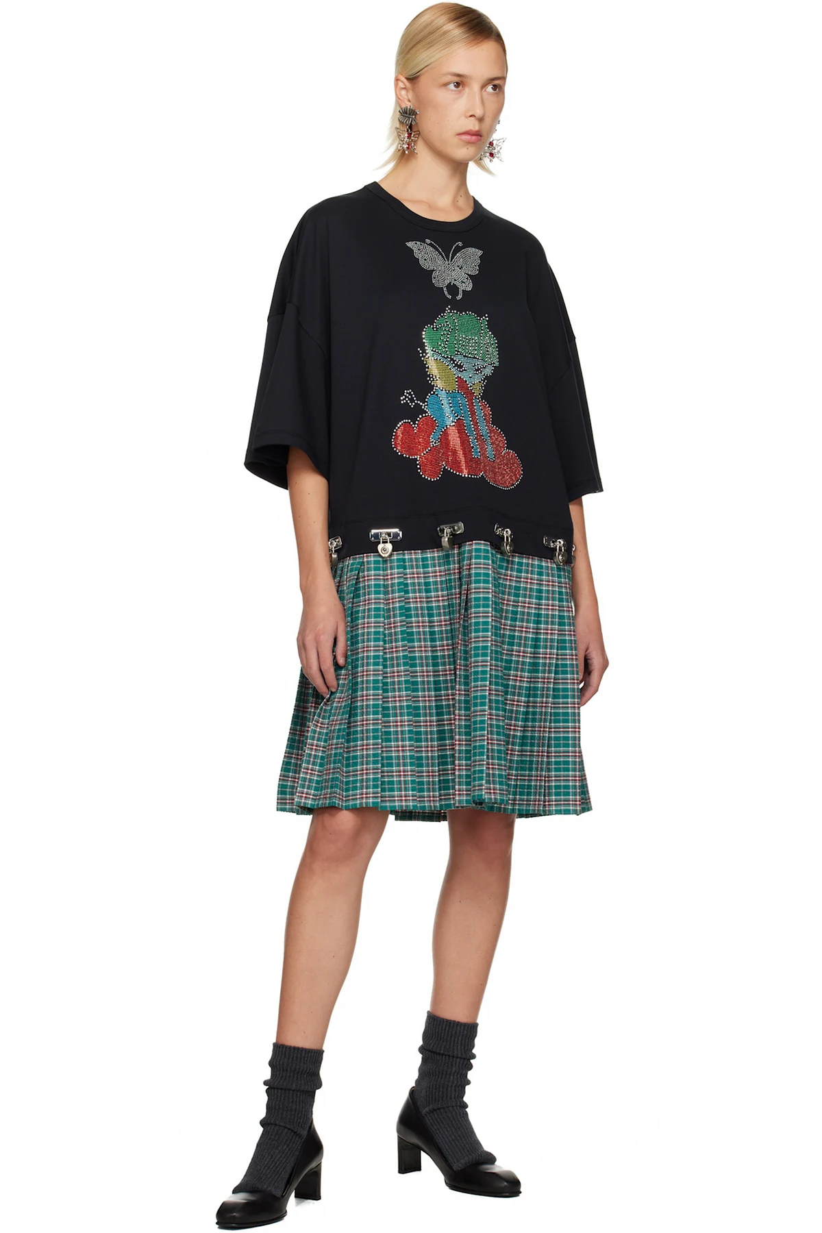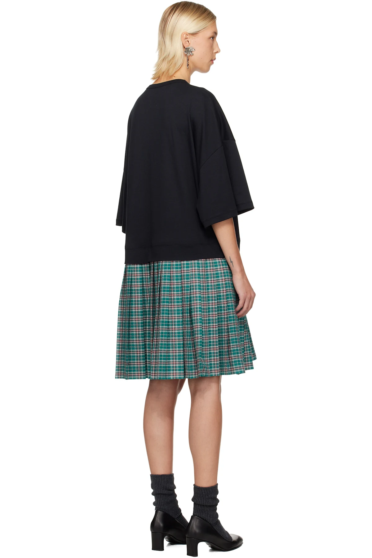· Knife pleats and check pattern at hem