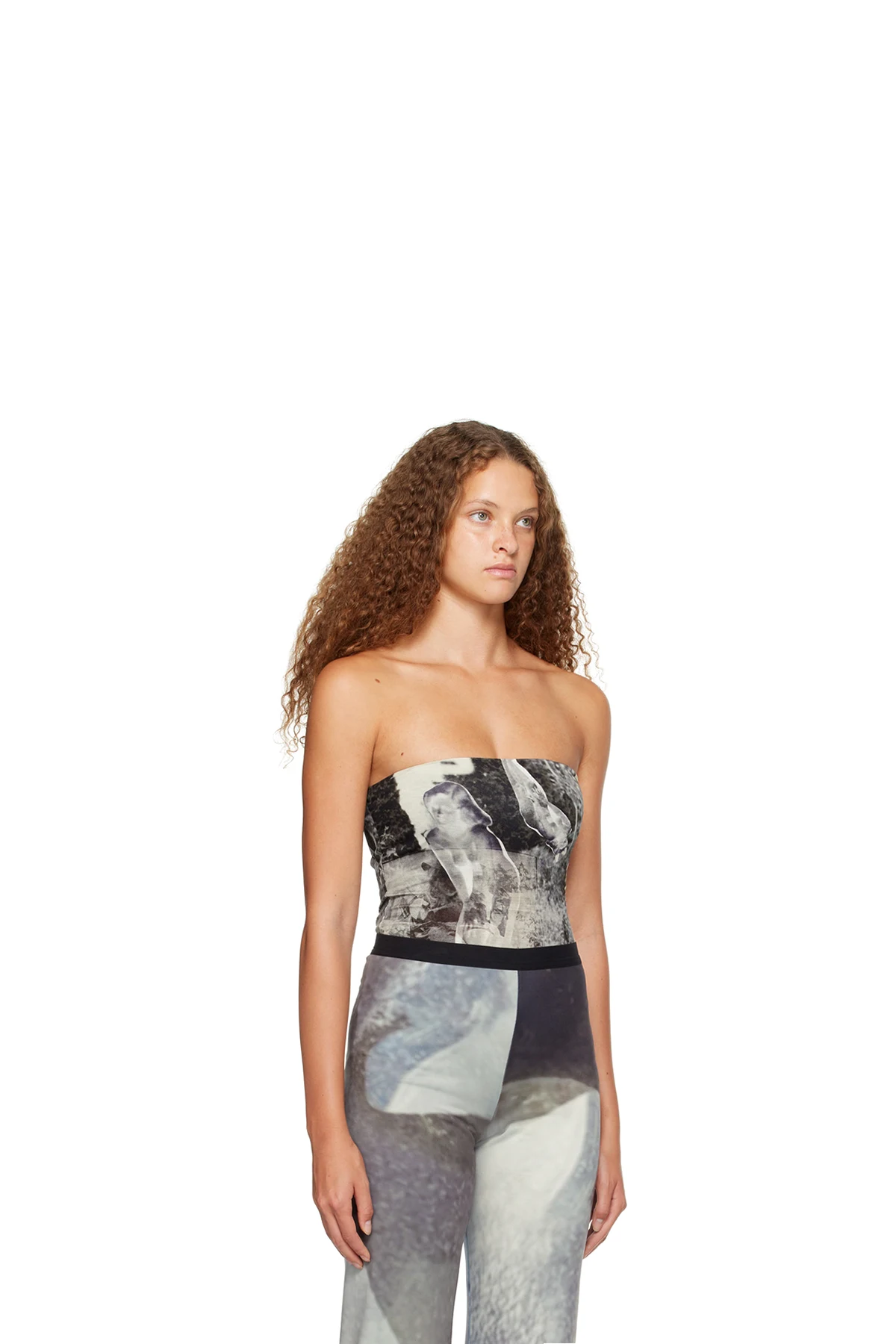 ECOVERO™-certified stretch viscose jersey bodysuit. Graphics printed throughout.