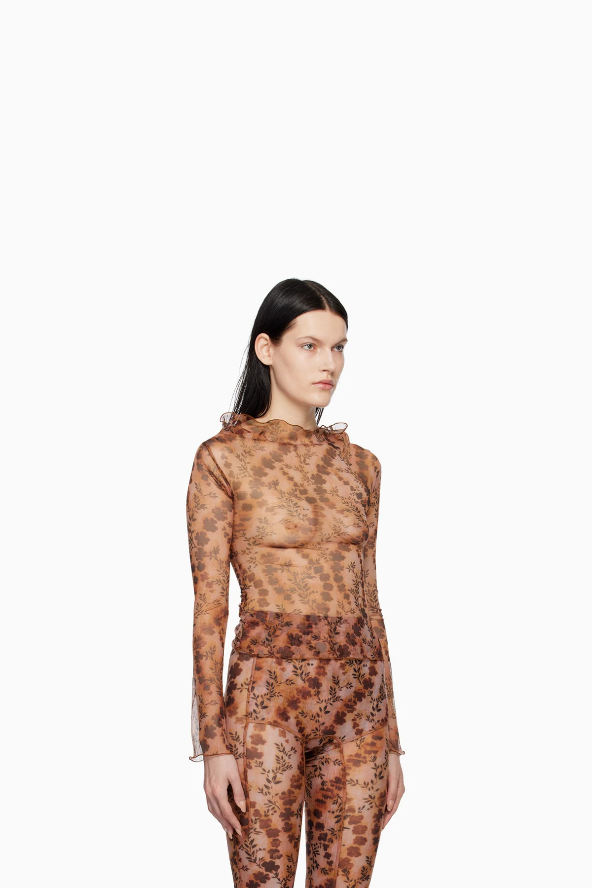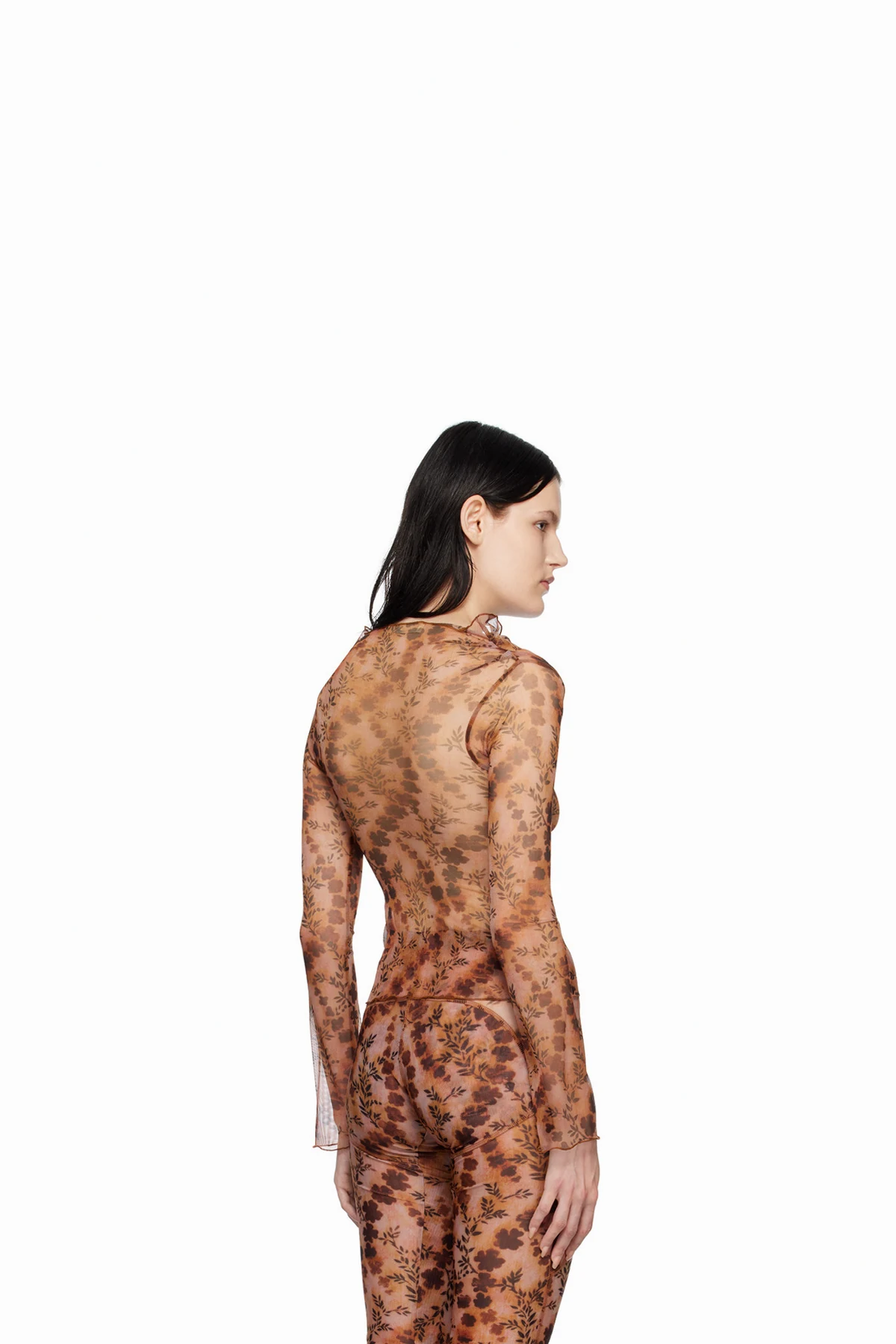 Sheer polyester mesh blouse.