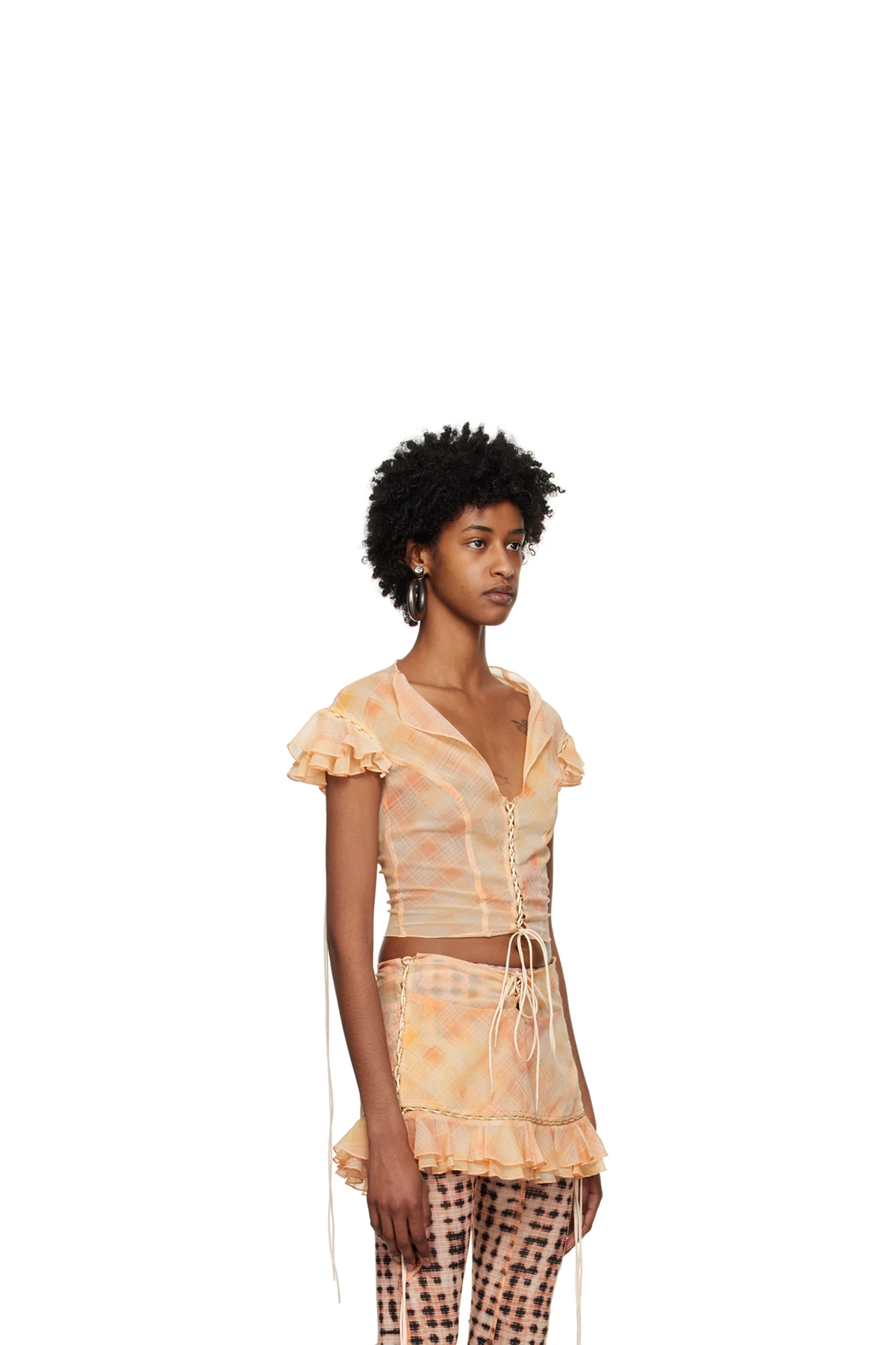 · Self-tie lace-up fastening at ruffled cap sleeves