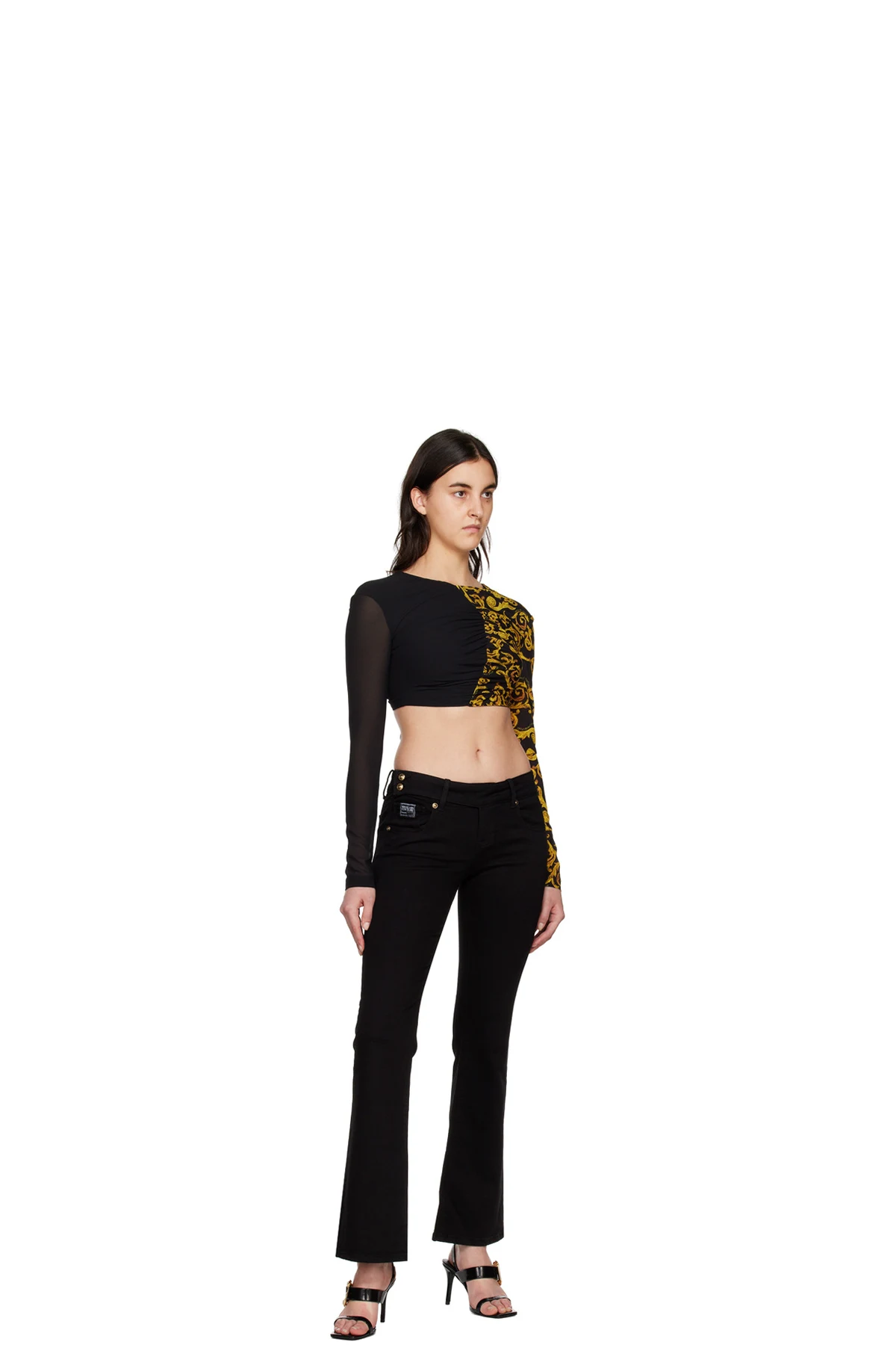 Semi-sheer polyester georgette blouse. Logo and graphic pattern printed throughout.