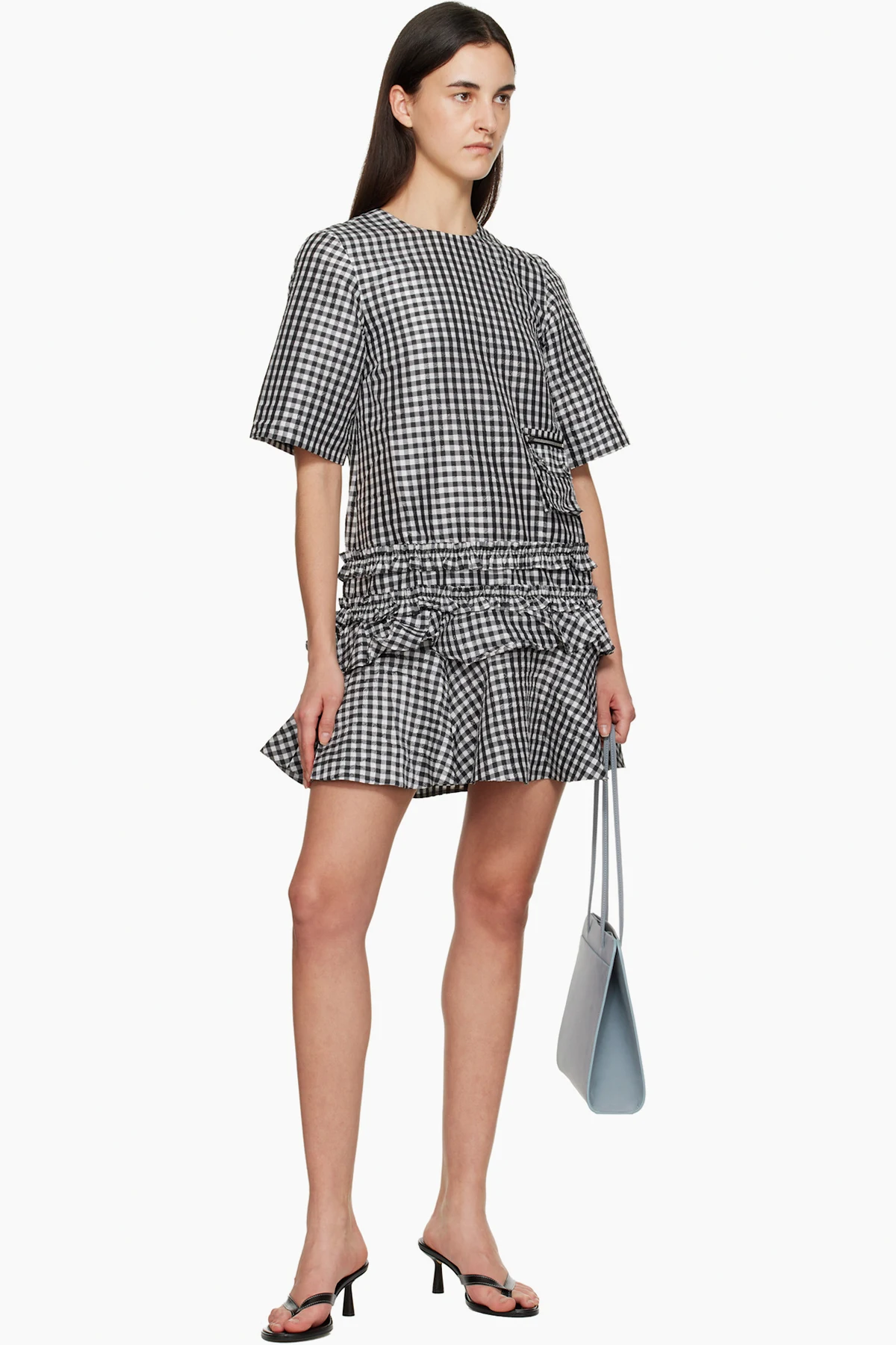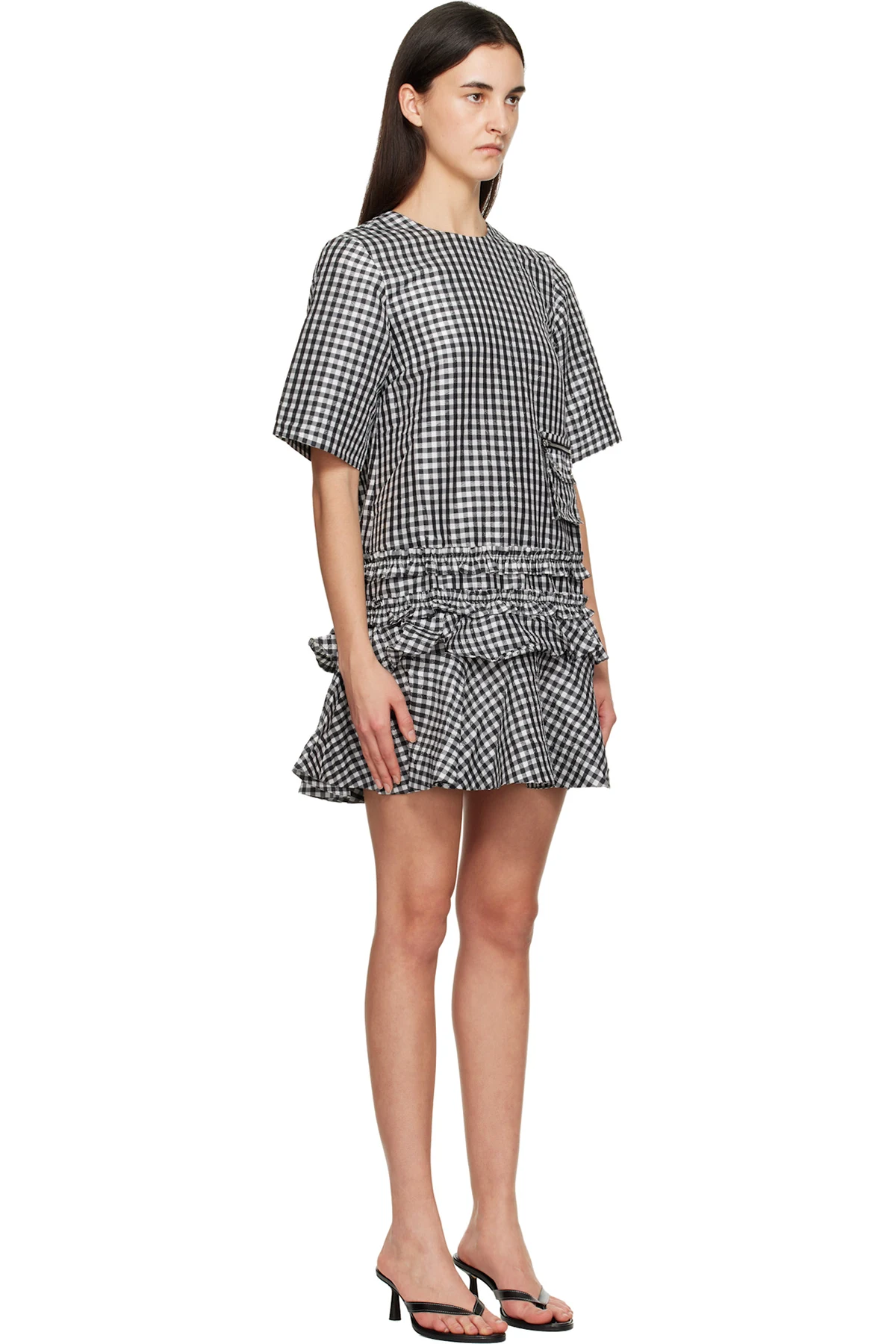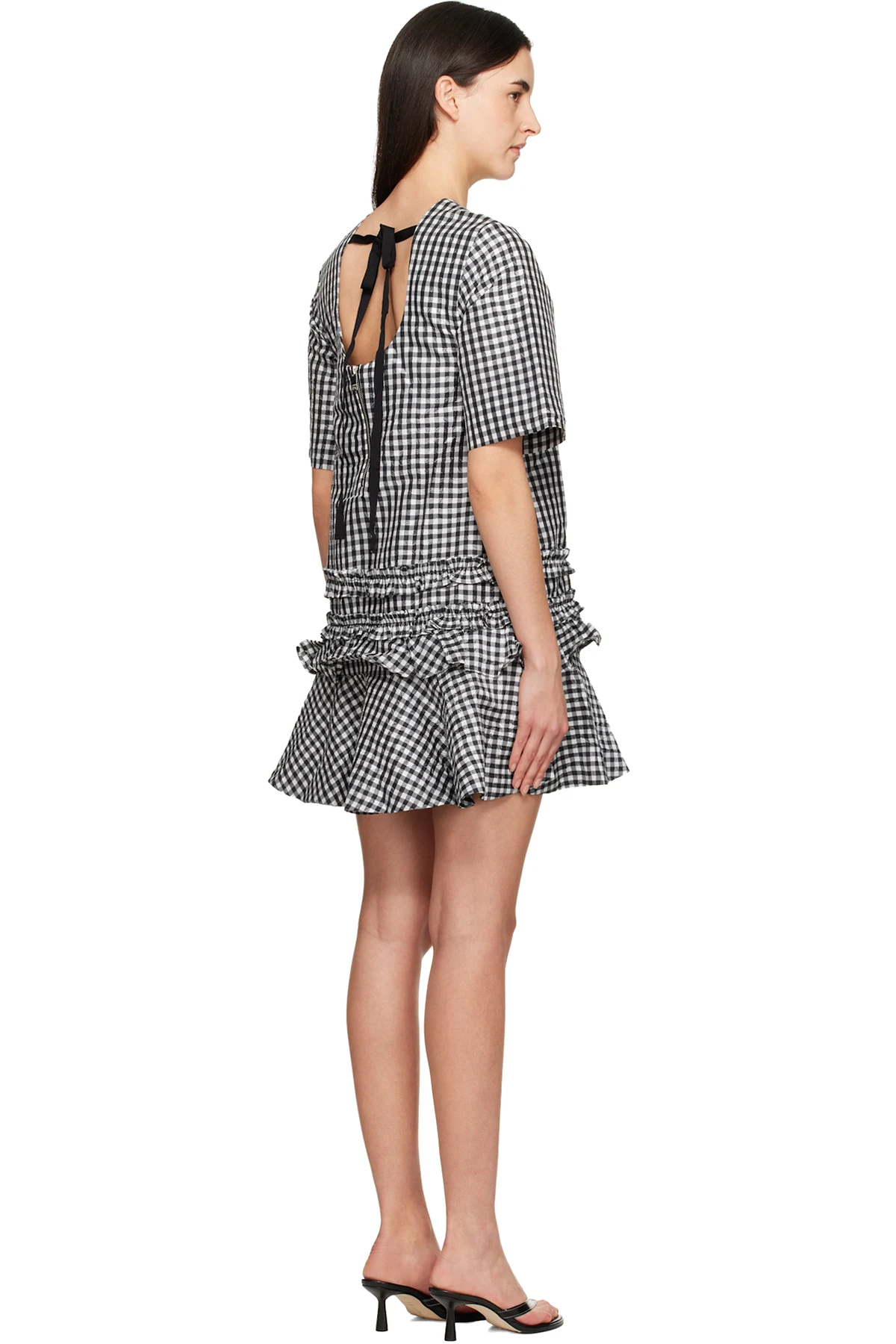Black & White Crinkled Check Minidress