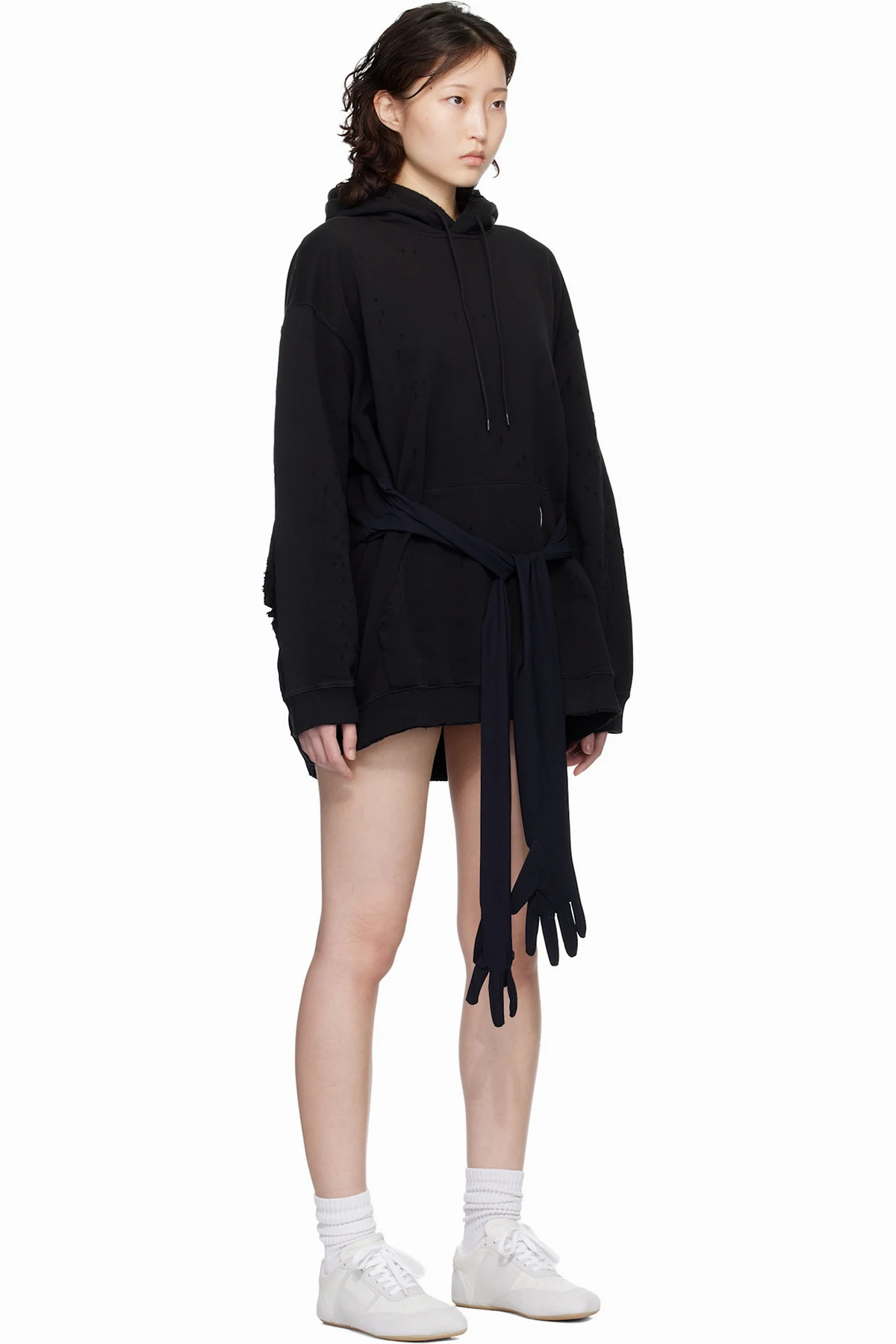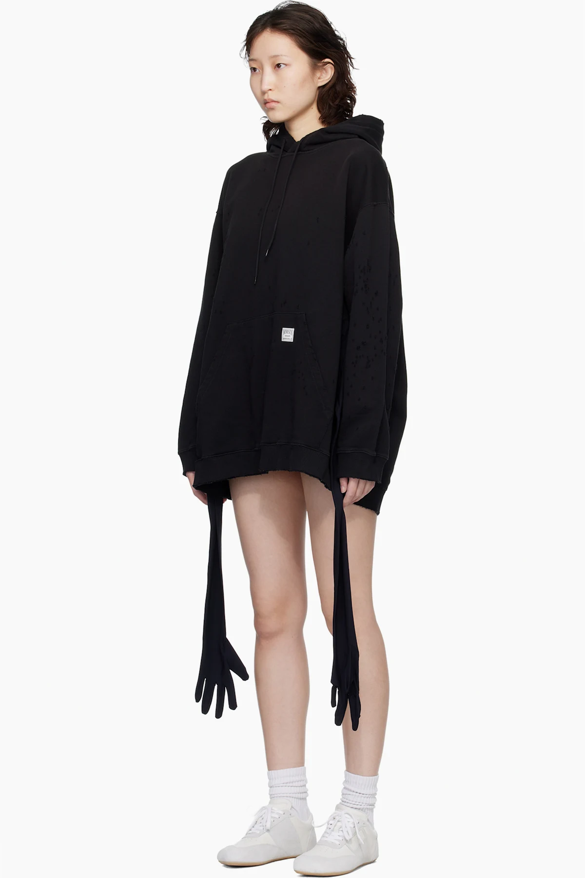 · Integrated gloved sleeves in black at waist
