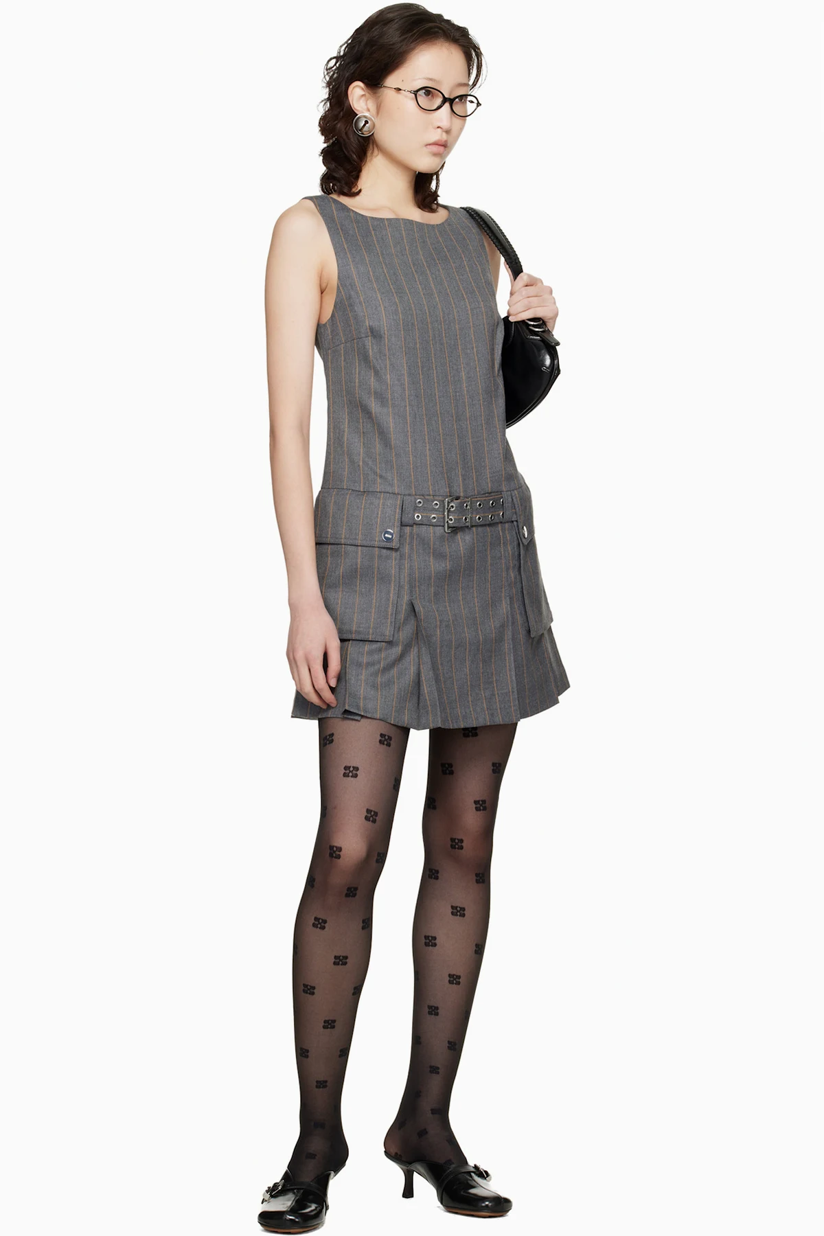 Off-White Short Sleeve Silk Mousseline & Lace Minidress