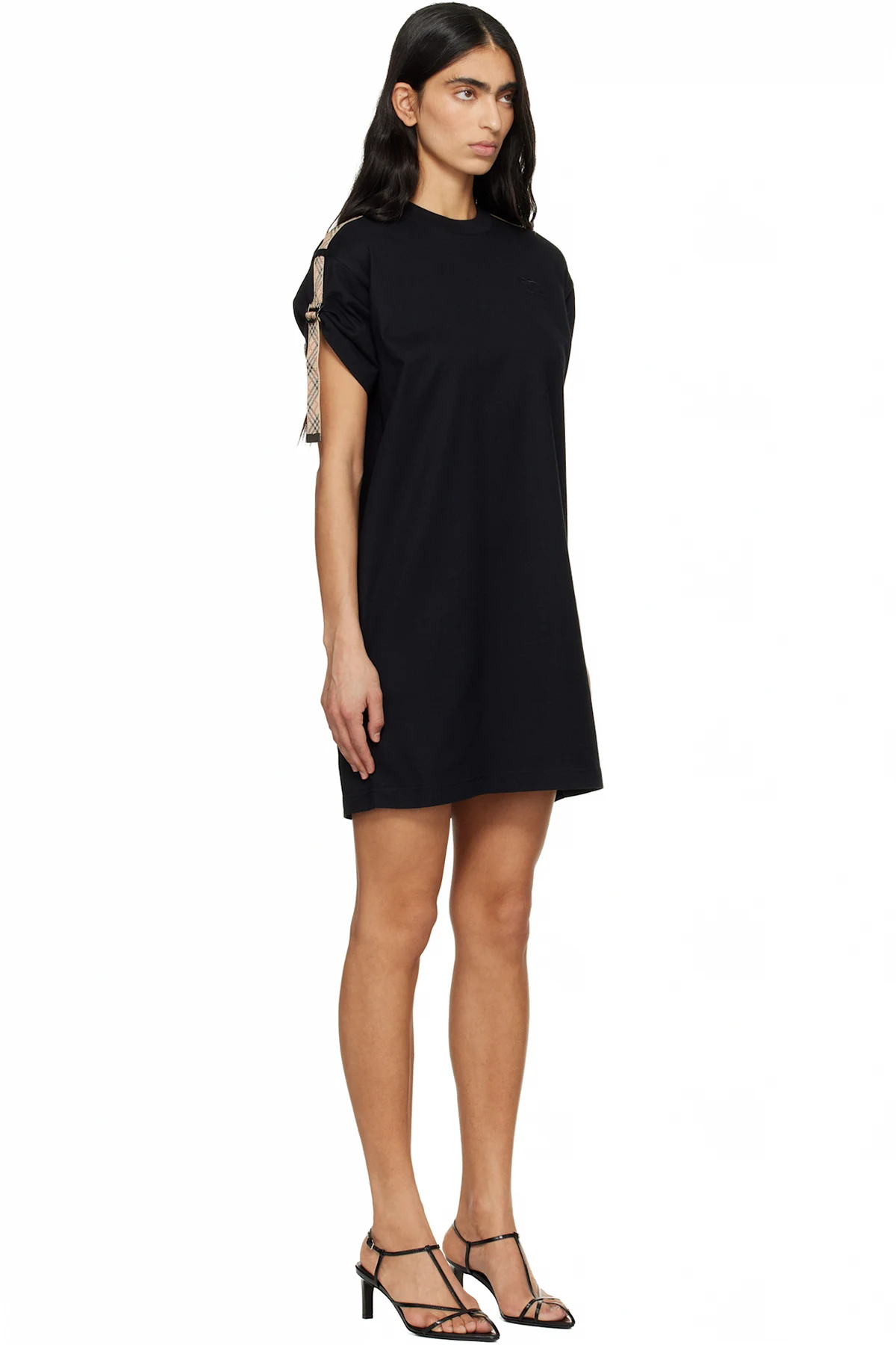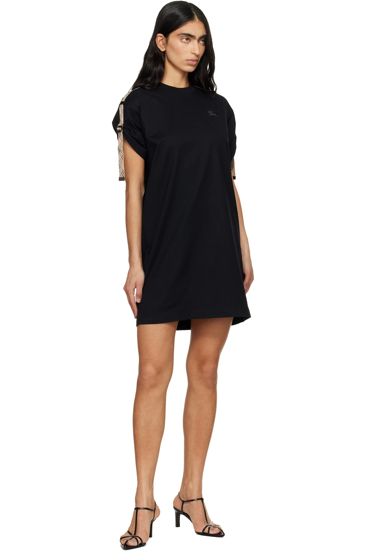 Black Check Trim Cotton T-shirt Minidress