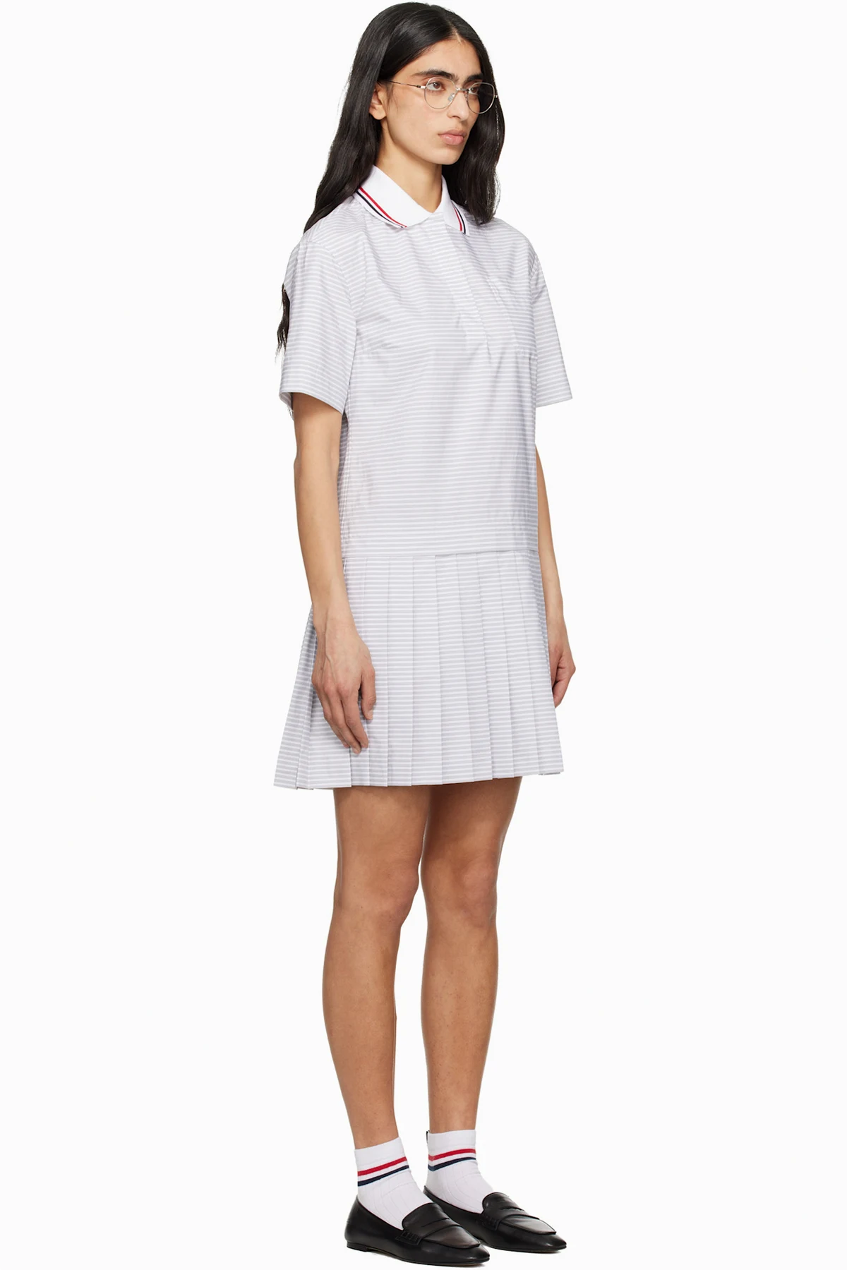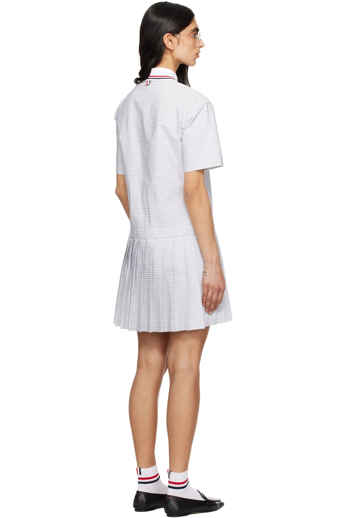 Gray Pleated Polo 4 Bar Stripe Poplin Minidress