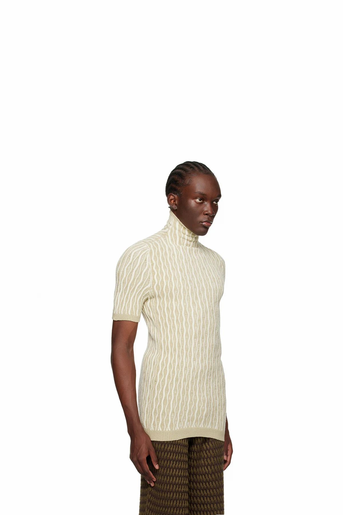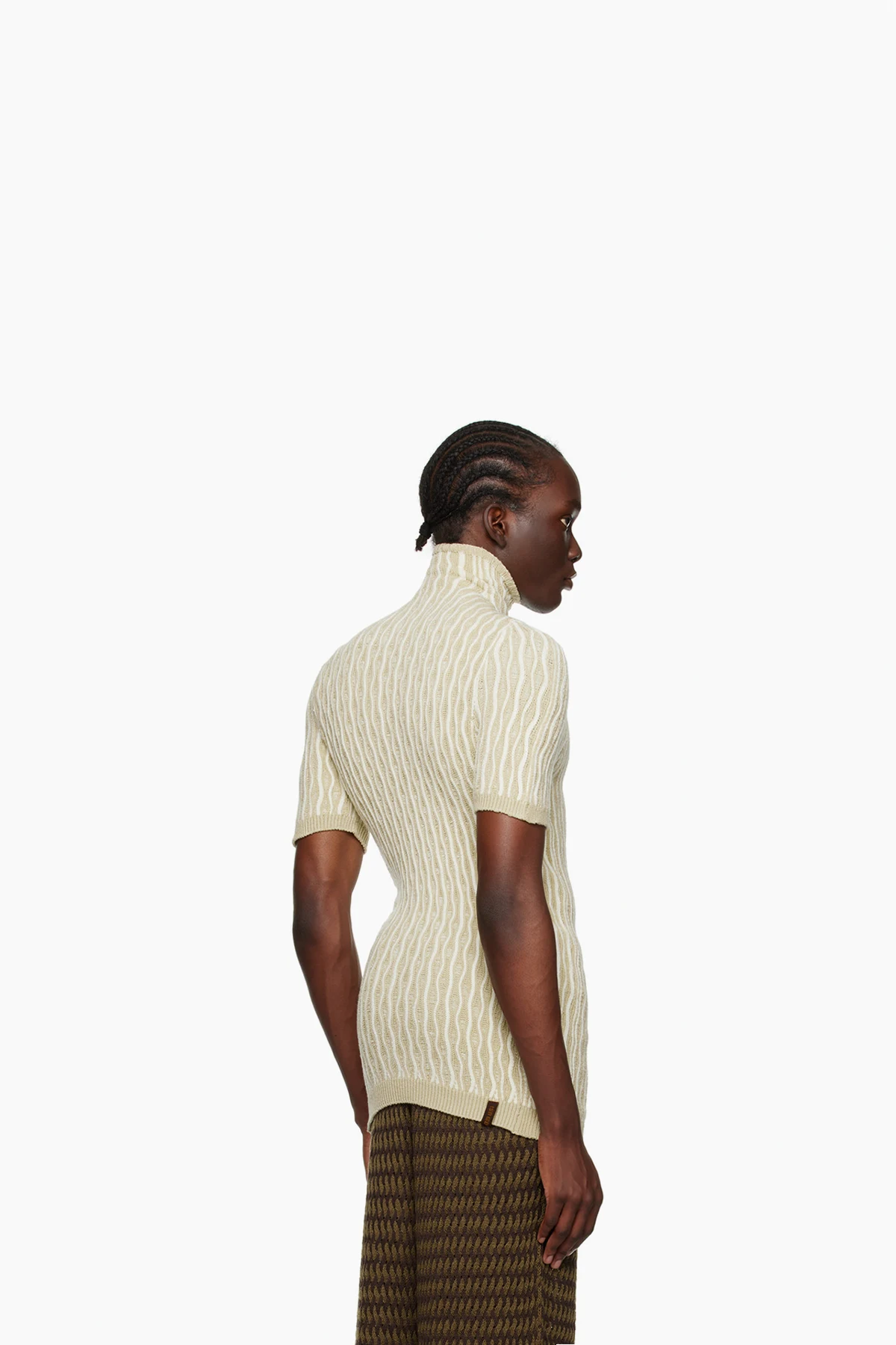 Handcrafted knit stretch acrylic bouclé T-shirt. Stripes throughout.