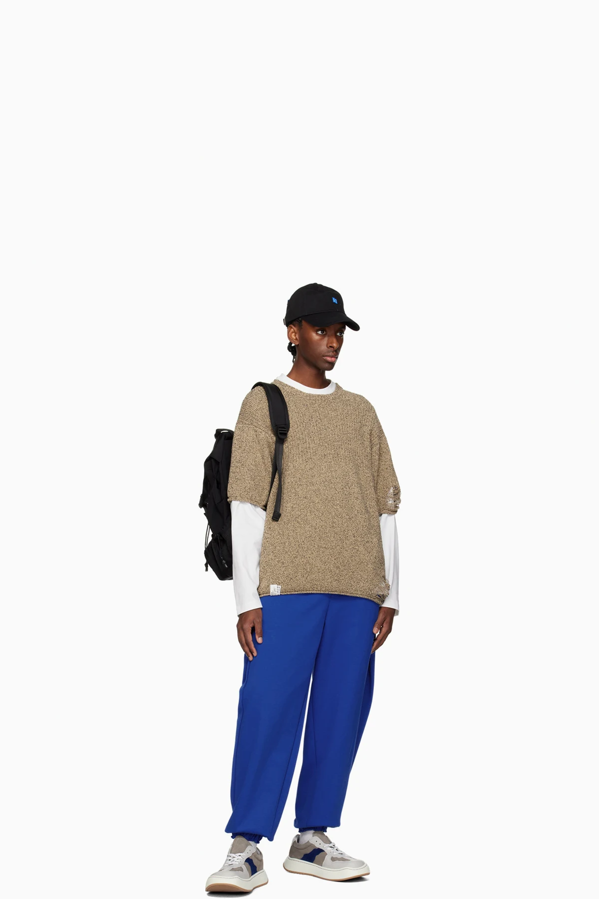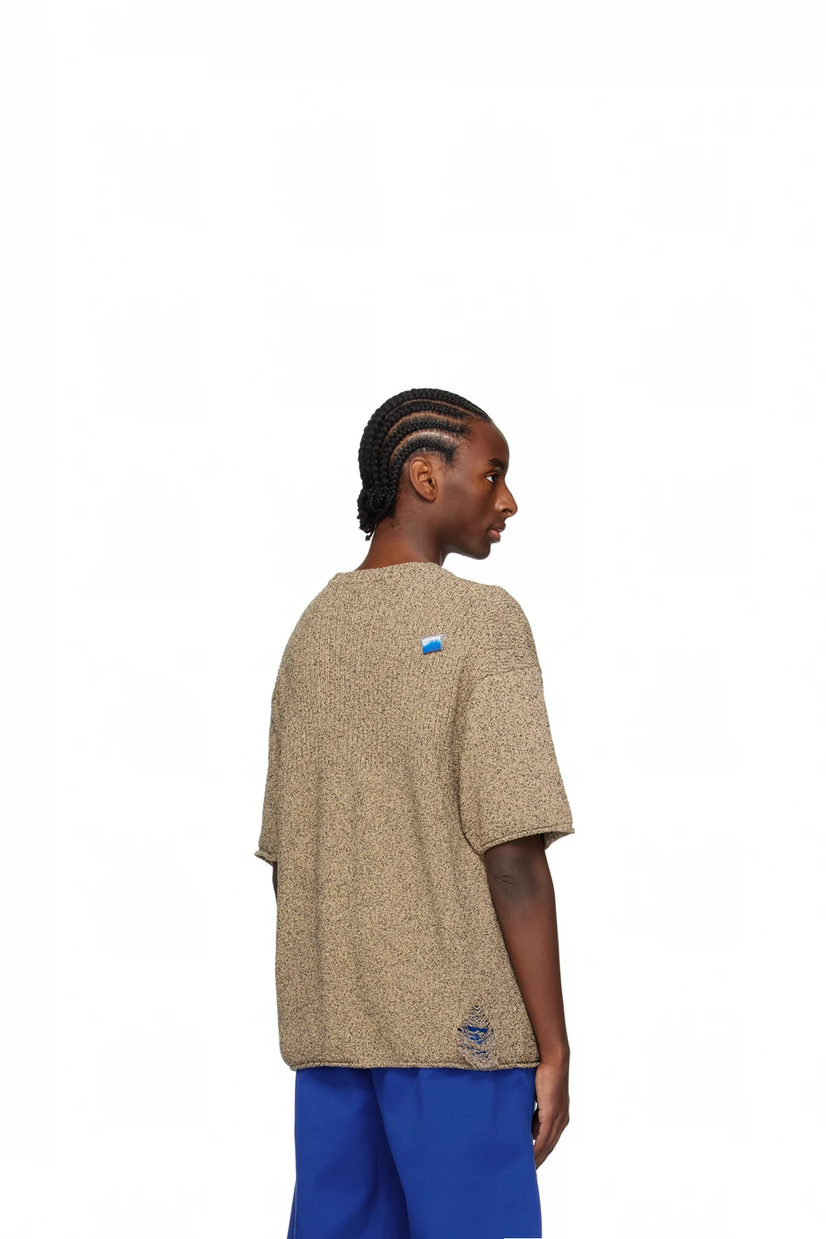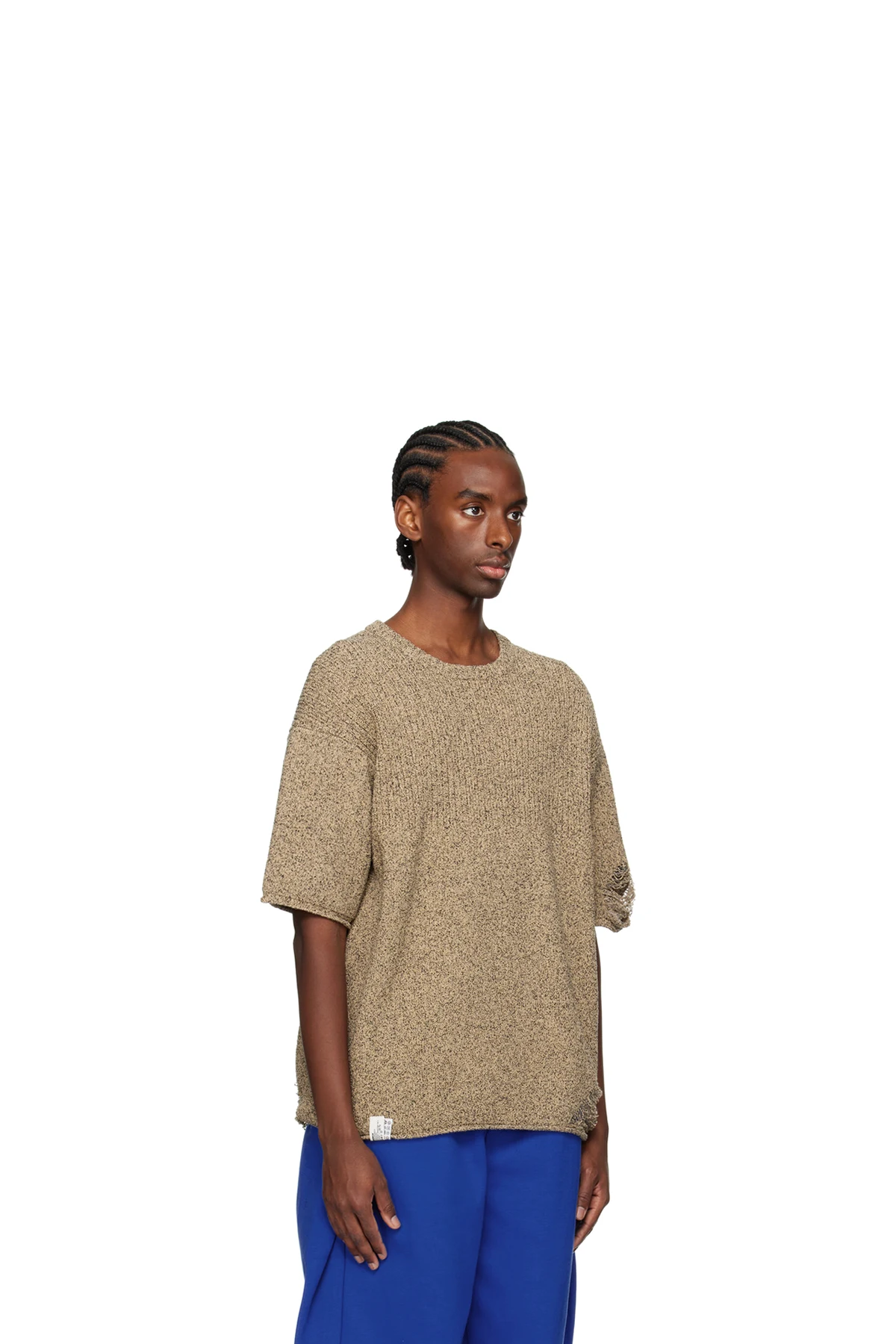 Rib knit cotton- and acrylic-blend T-shirt. Distressing throughout.