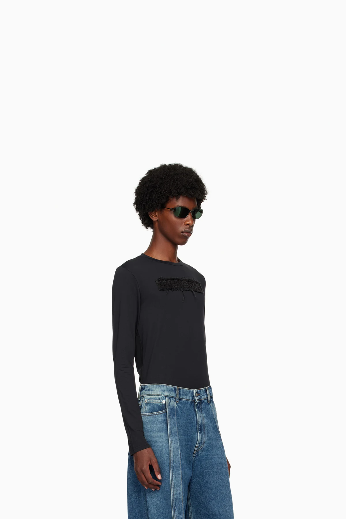 Stretch nylon jersey T-shirt. Embroidered logo patch at chest.