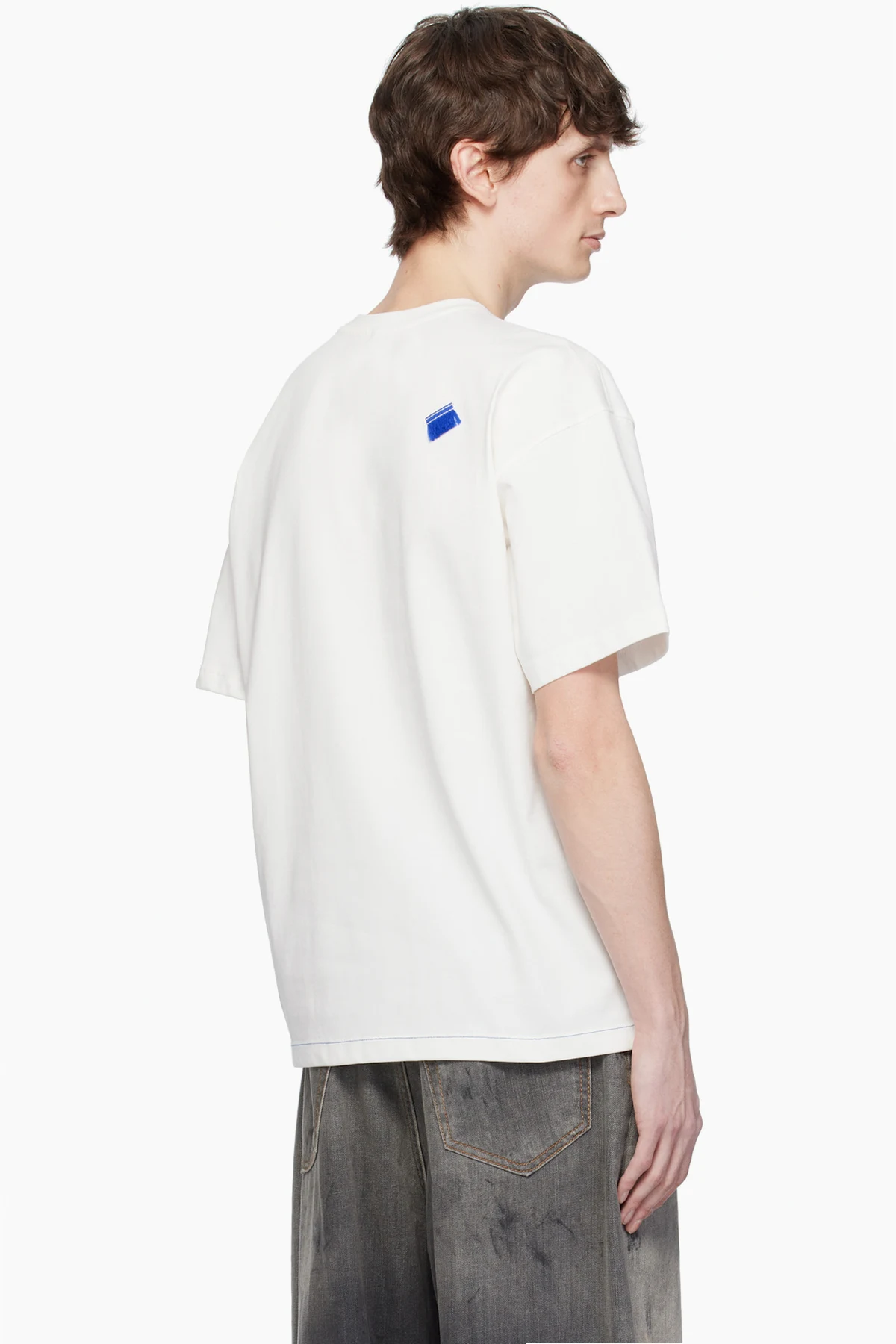 · Contrast stitching in blue at hem
