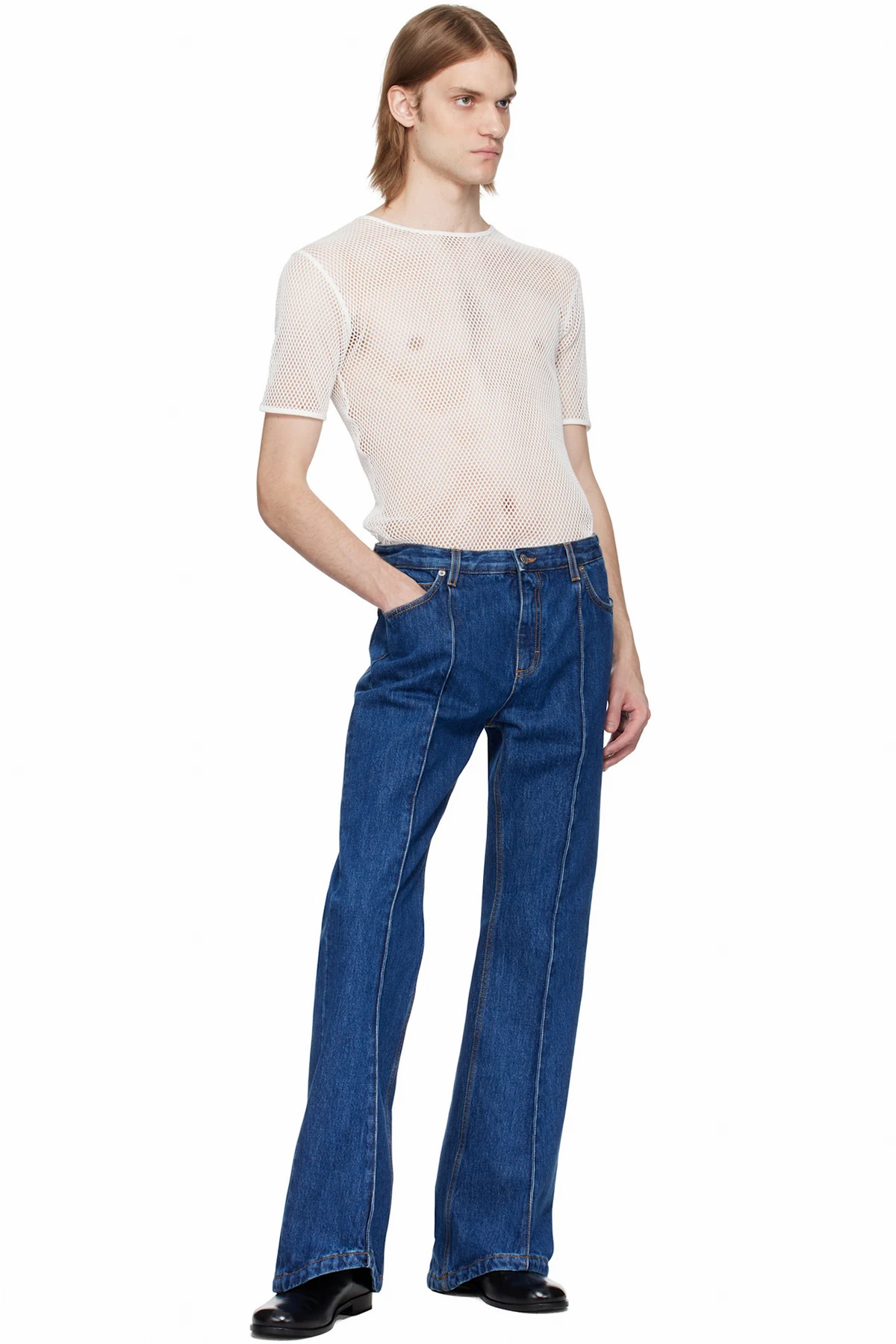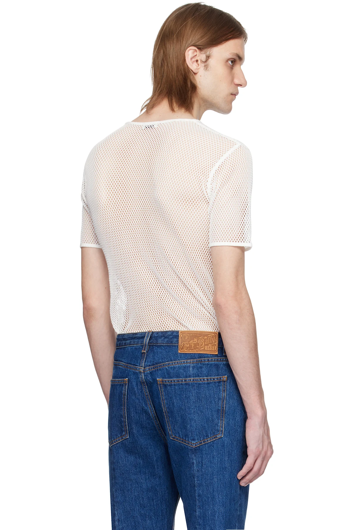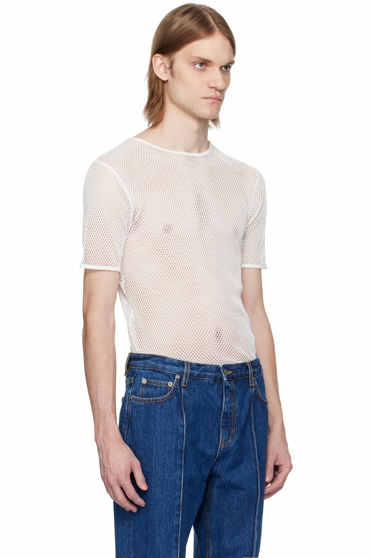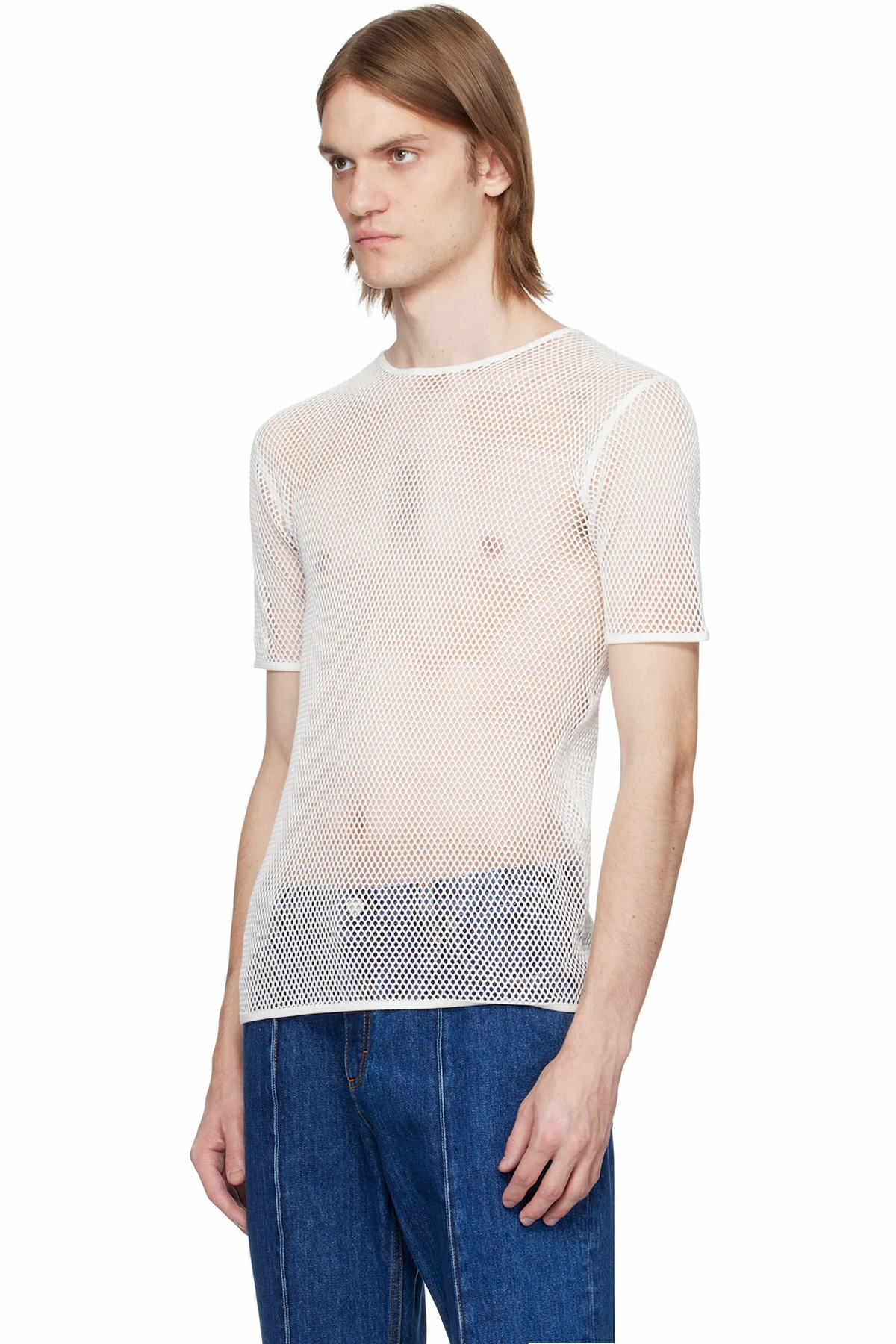 Sheer organic cotton fishnet T-shirt. Crewneck.