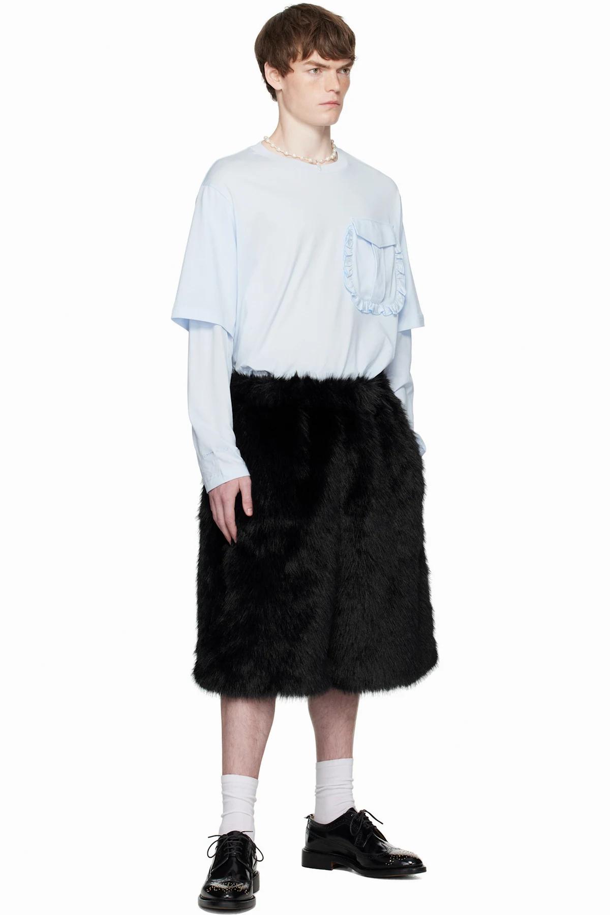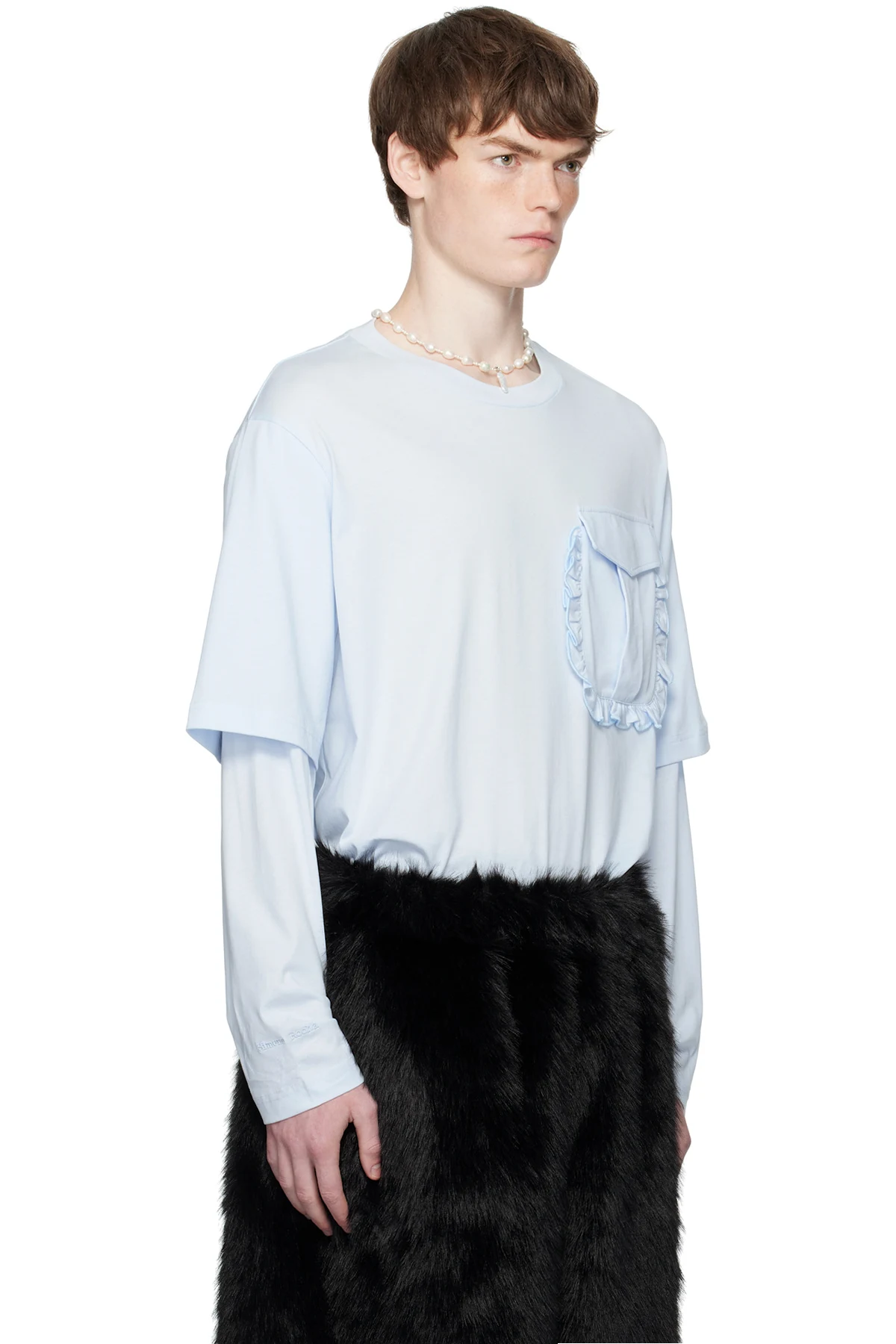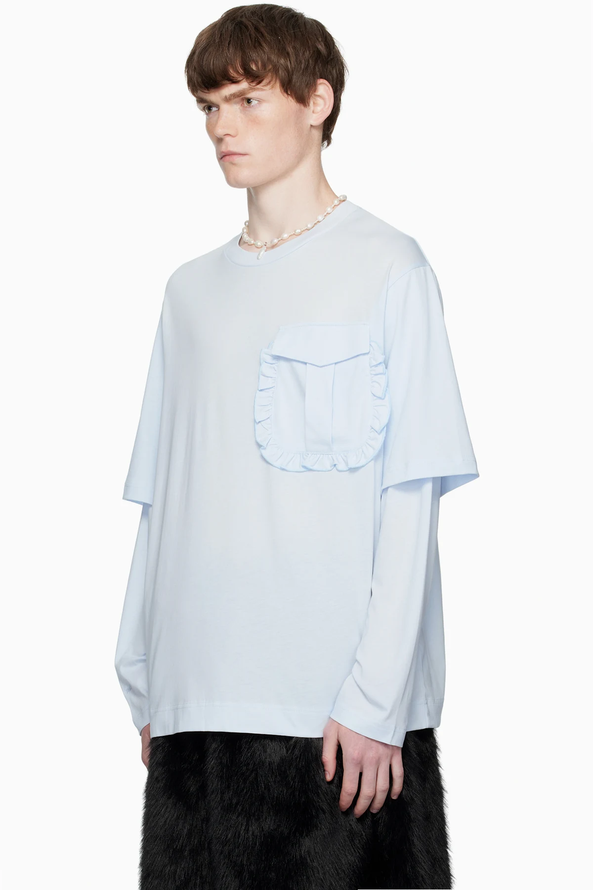 Blue Layered Ruffle Pocket Long Sleeve T-shirt