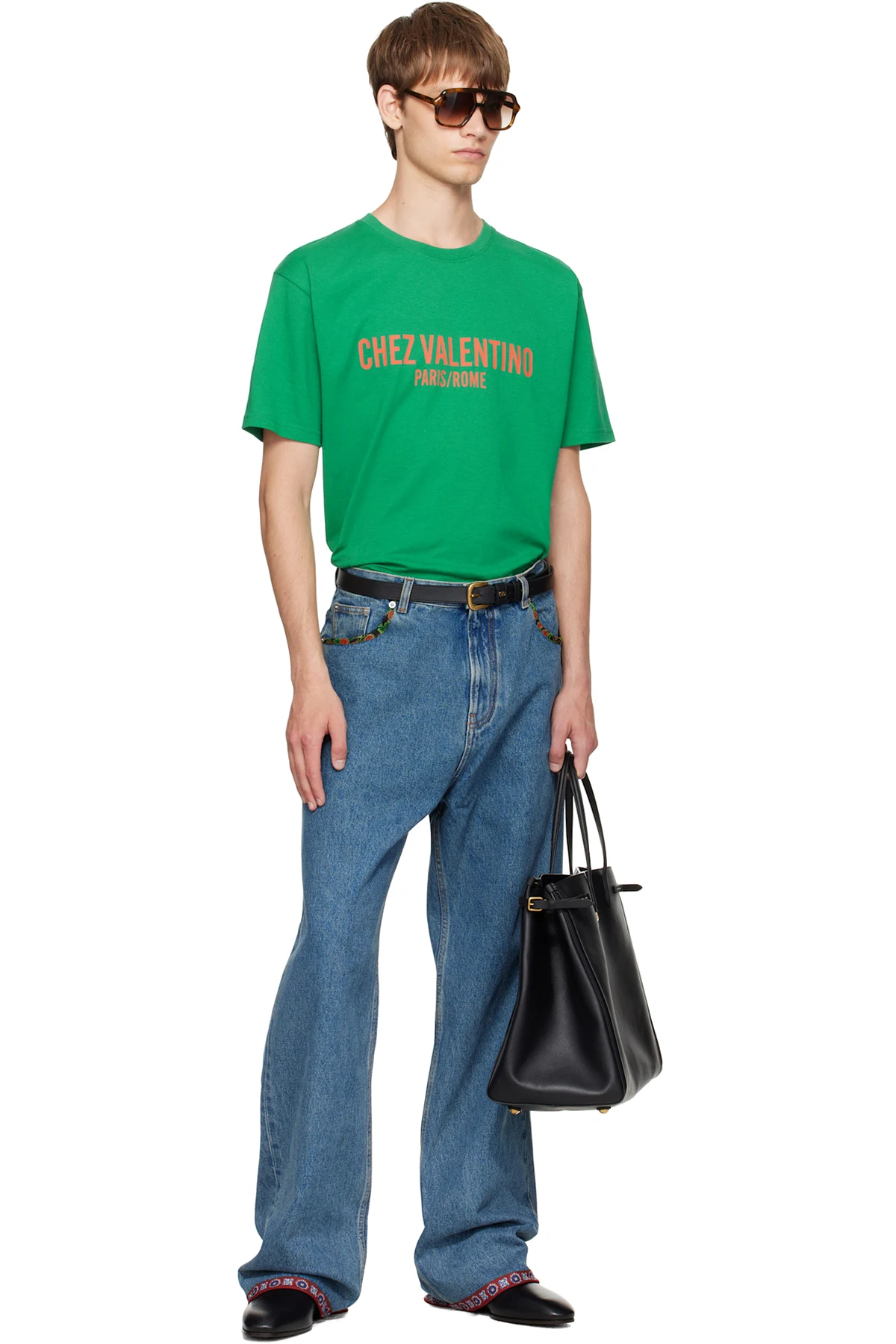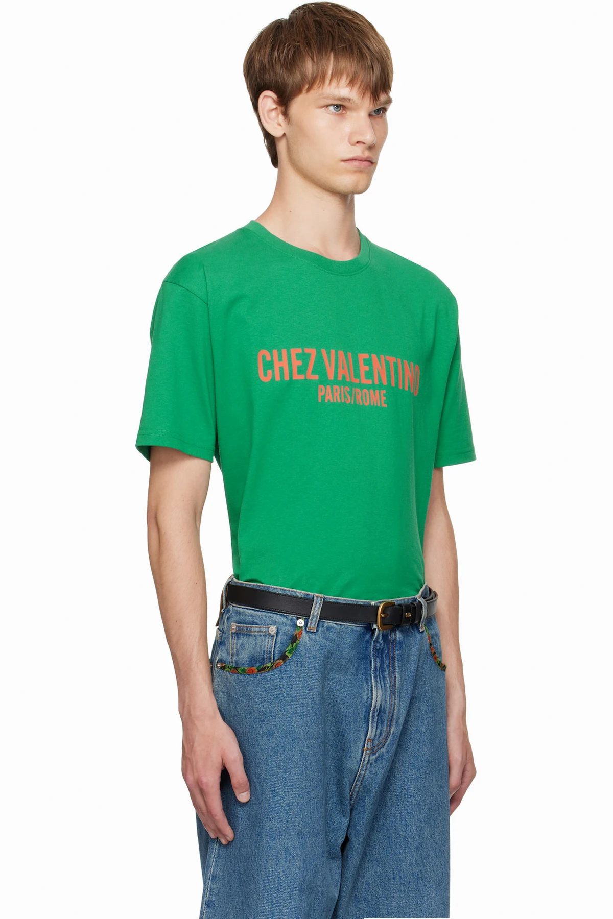 Green 'Chez Valentino' Print T-shirt