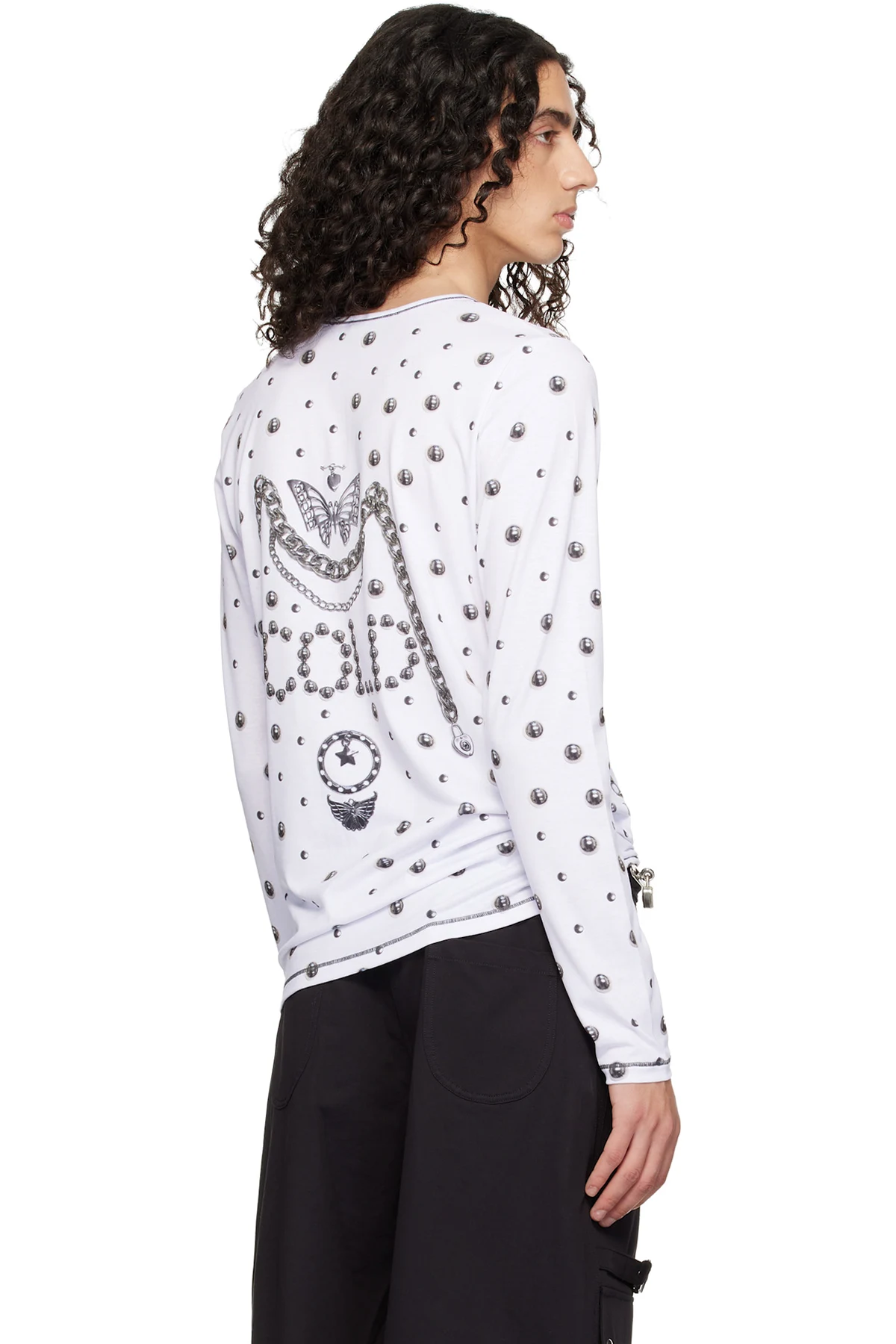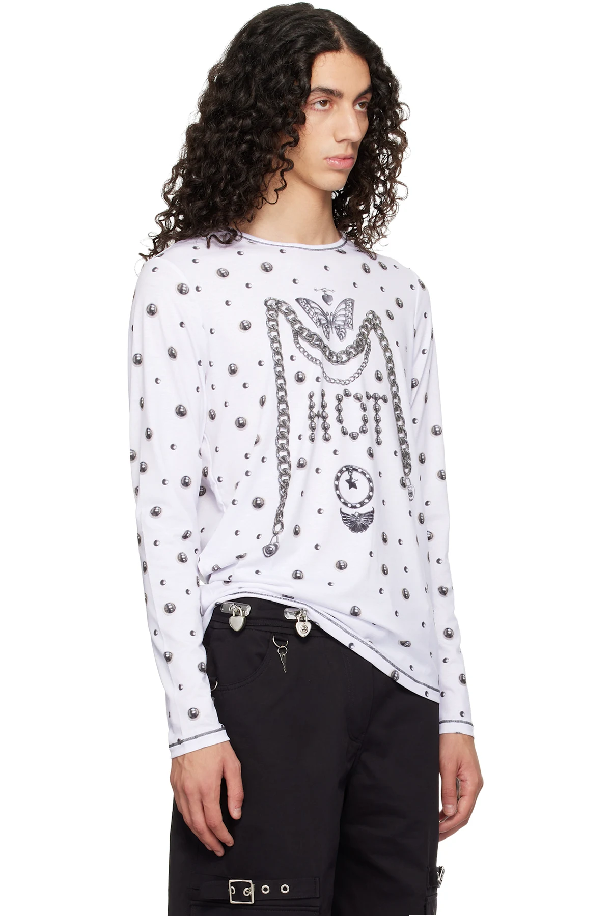 · Contrast stitching in black at crewneck, hem, and cuffs