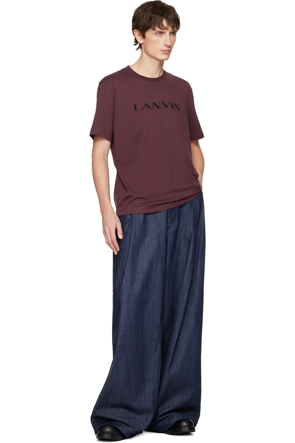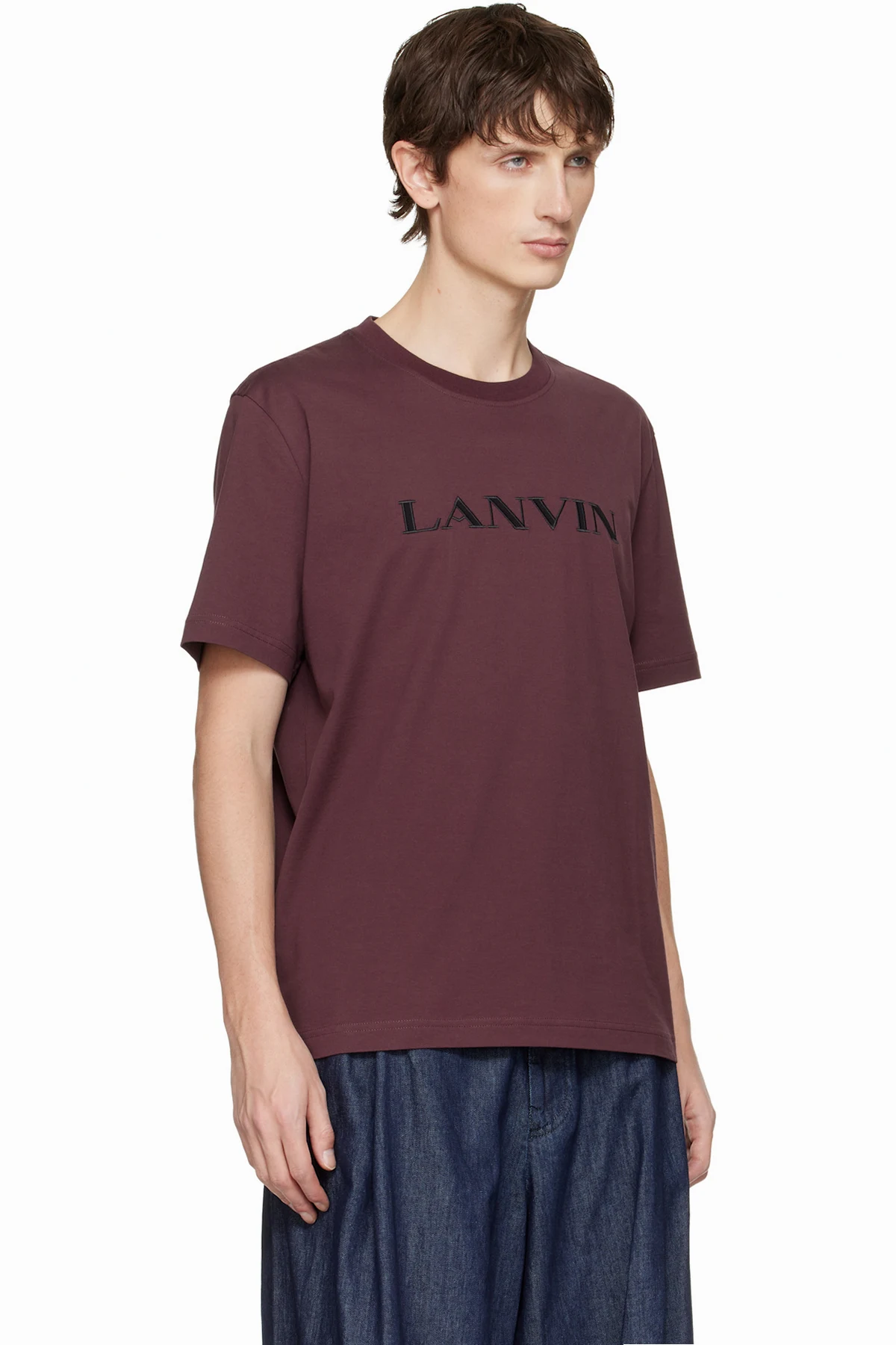 Burgundy 'Lanvin' Embroidered Cotton T-shirt