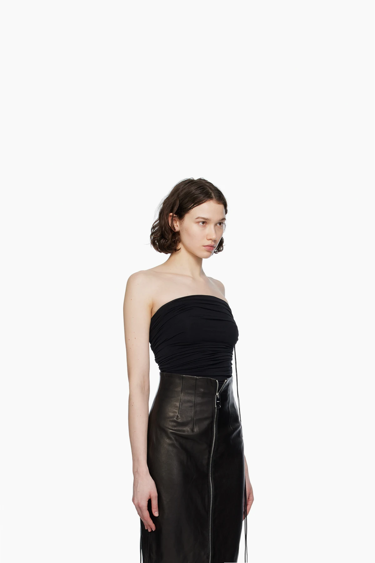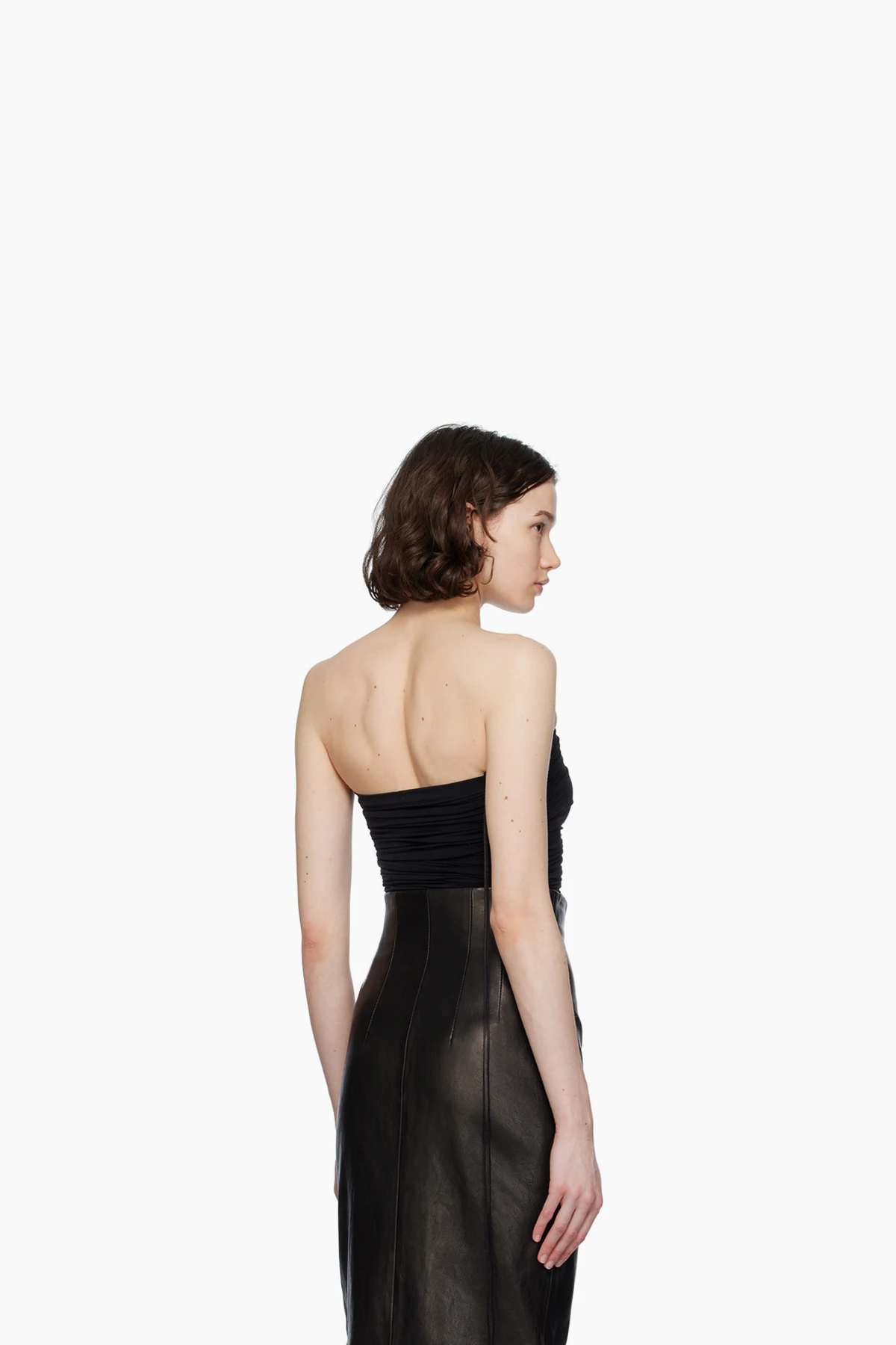 Blufibre® recycled stretch nylon jersey bodysuit. Gathering throughout.