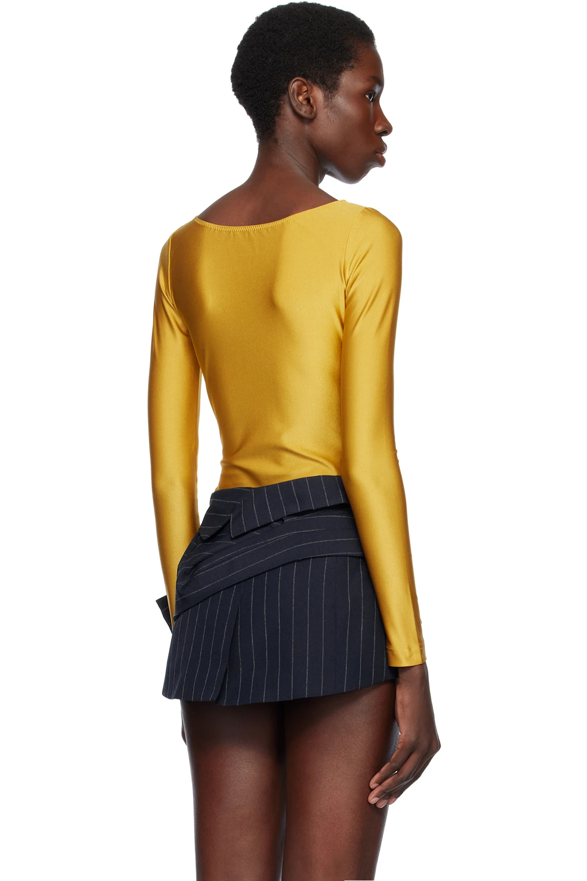 Nylon-blend lamé jersey bodysuit.