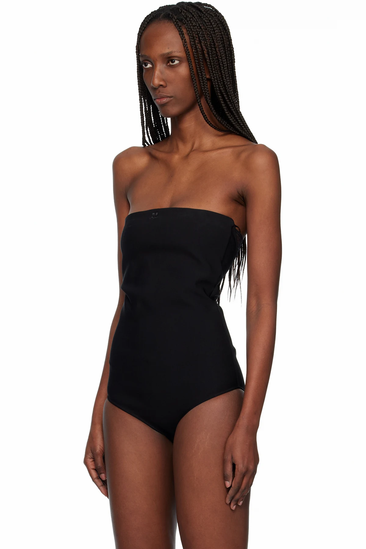 Body: 86% viscose, 10% nylon, 4% elastane. Trim: 92% polyester, 8% elastane.