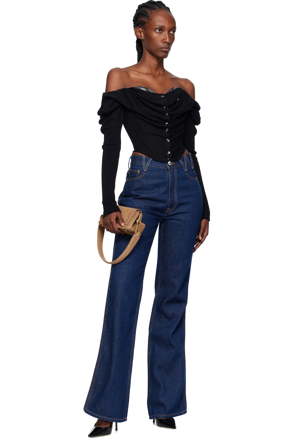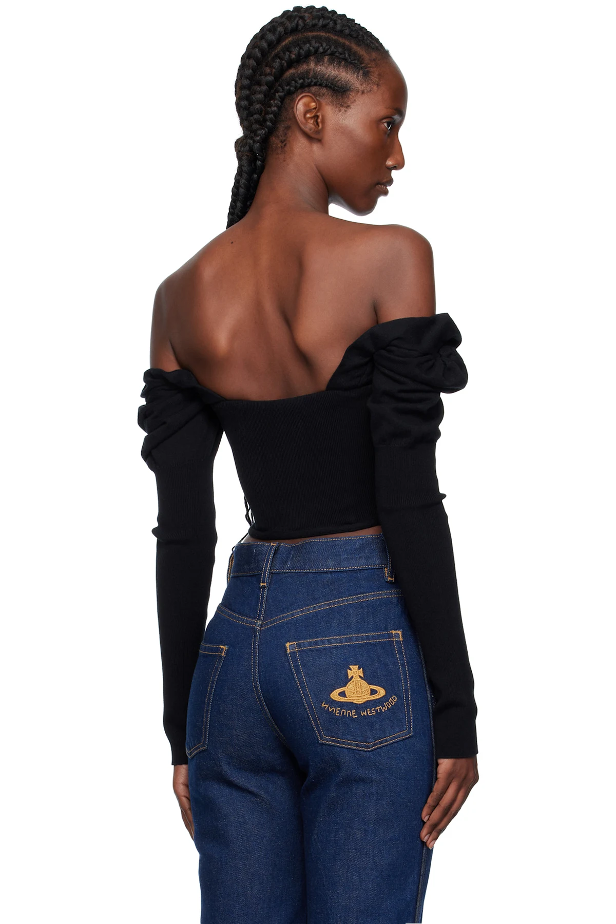 · Layered off-the-shoulder construction